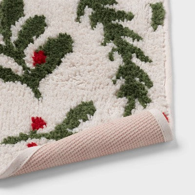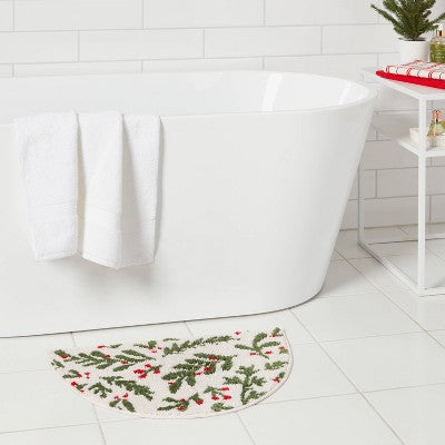 17"x24" Christmas Half Moon Botanical Bath Rug White - Wondershop™