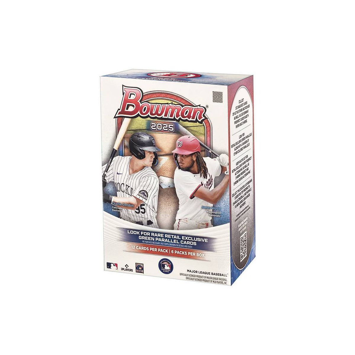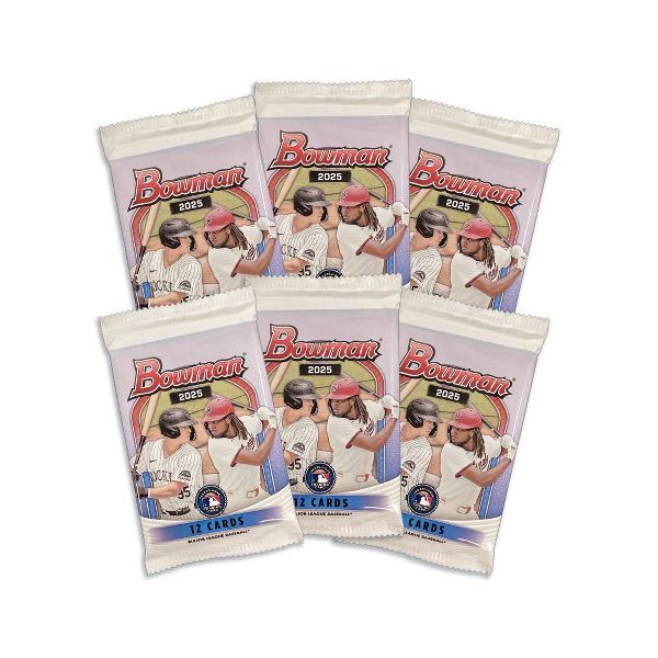 Topps presents the 2025 MLB Bowman Baseball Trading Card Value Box. Each box contains 6 packs with 12 cards per pack. Look for Rare Retail Exclusive Green Parallel Cards along with a Rainbow of other Colored Parallels! Keep an eye out for Retail Exclusive Paper Prospect Autographs as well as Chrome Prospect and Chrome Rookie Autographs. Content may vary.