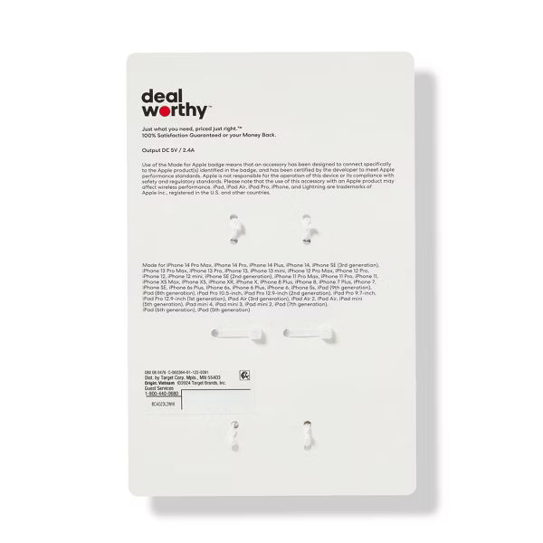 Charge your devices quickly with the 3' Lightning to USB-A 2pk Cable - dealworthy™ White. Compatible with iPhone 14 and older models and select iPads, these cables feature a male-to-male connection, ensuring flexibility for convenient charging and syncing of your devices. Backed by a 1-year limited warranty, this cable from dealworthy™ makes it the ideal choice for all your charging requirements.