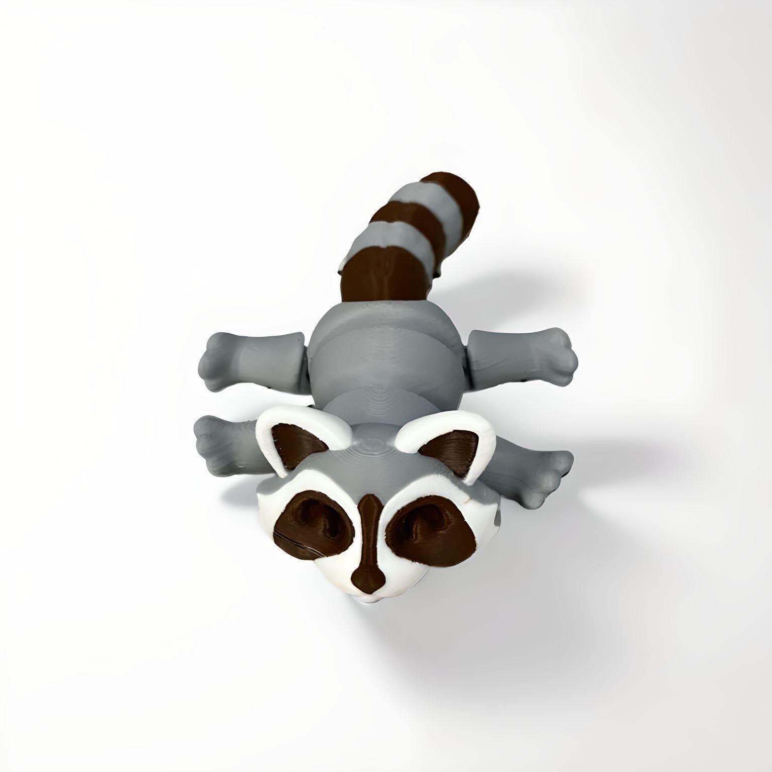 This raccoon t has moving joints and can be re-positioned however you like. This item is NOT painted, but is a full-color print. Each color is a different filament. The raccoon can lay down or sit up and has cute little paws with paw-prints.