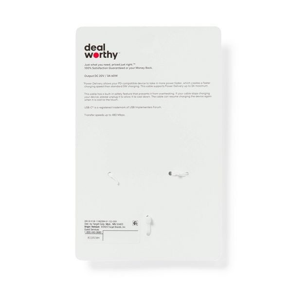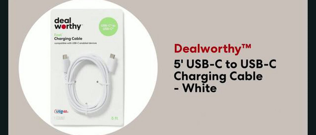Charge your devices quickly with the 5' USB-C to USB-C Cable - dealworthy™ White. This cable features a male-to-male connection, ensuring flexibility for convenient charging and syncing of your devices. Backed by a 1-year limited warranty, this cable from dealworthy™ makes it the ideal choice for all your charging requirements.