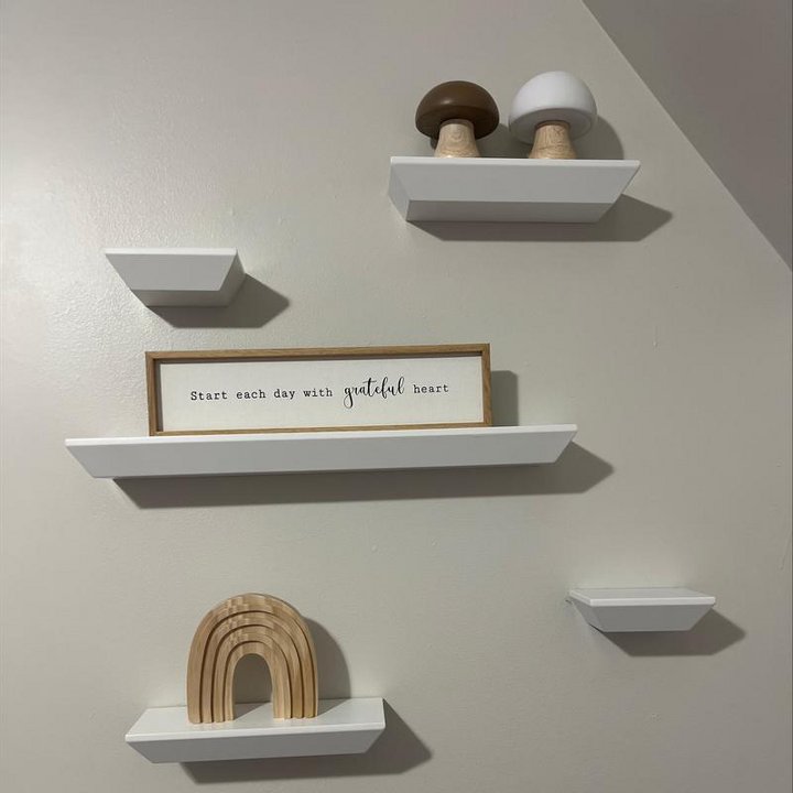 A great combination of function and timeless design, this 5-Piece Wedge Shelves from Threshold™ makes an elegant addition to your home. This five-piece shelf set comes in varying sizes to easily hold items like books, plants and smaller decor. Crafted from a wooden frame, these shelves are easy to attach to the wall using the included anchors and screws — simply use them in the living room, study area or any other space.
