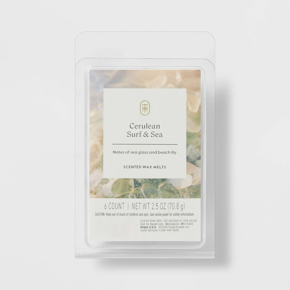 Description: Create an inviting space with the 6ct Cerulean Surf and Sea Wax Melts from Threshold™. This pack includes six square-shaped wax melts, each crafted from a blend of palm wax and paraffin wax to ensure long-lasting fragrance. With a total weight of 2.5 ounces, these wax melts are great for filling your living space with the comforting and refreshing oceanic aromas. Simply break off a piece, place it in your wax warmer and enjoy hours of delightful vibe. Threshold™: Looks like home, feels like you.