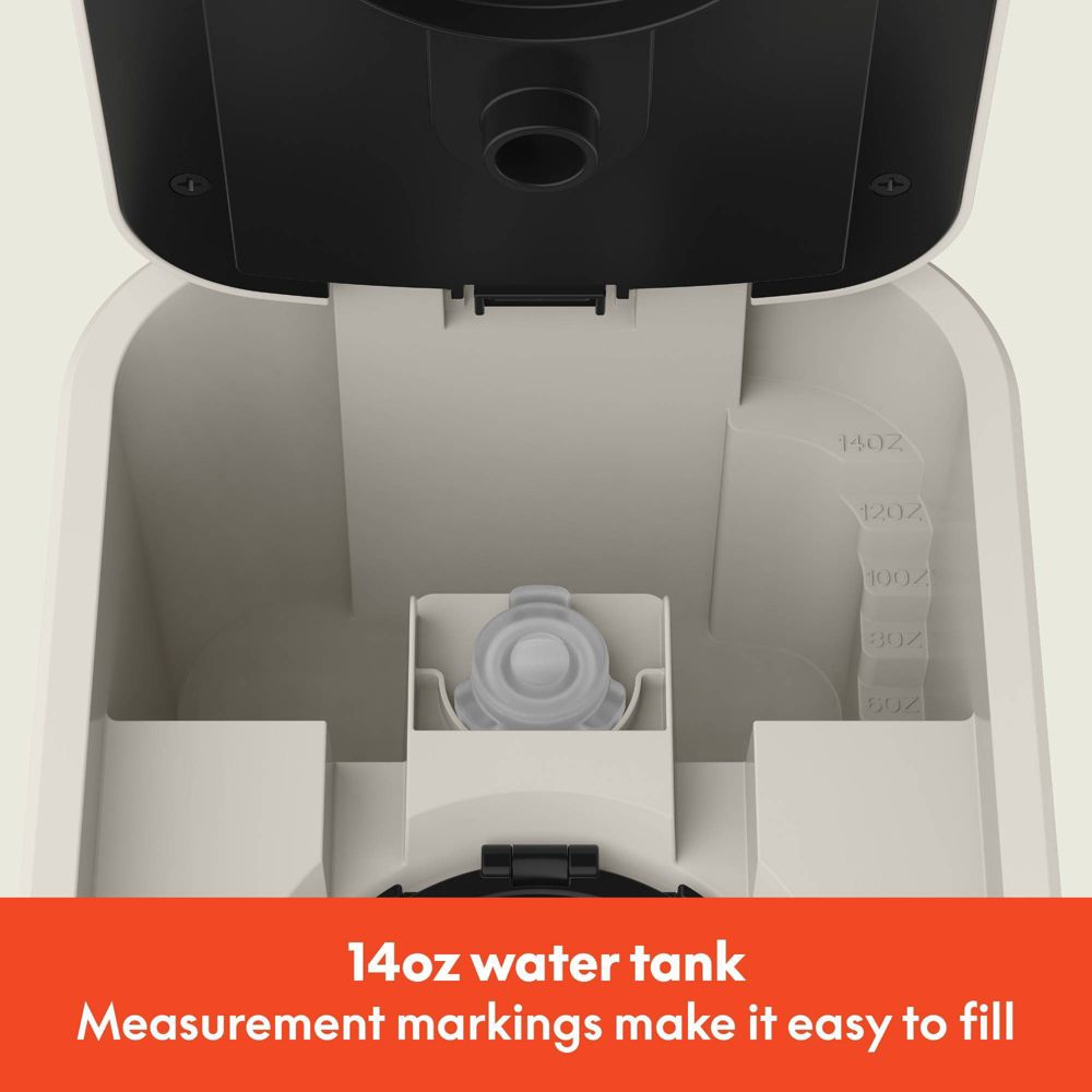 Removable water tank holds up to 35oz of water