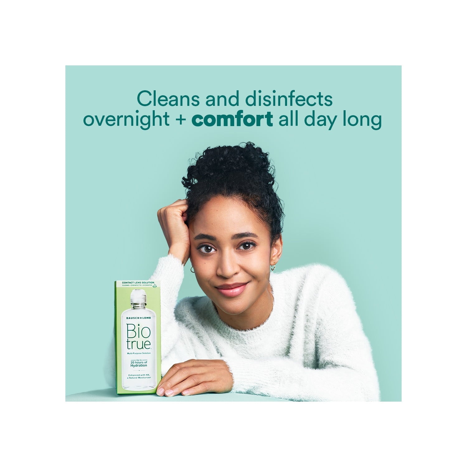 - CLEANS & DISINFECTS: Biotrue contact lens solution provides exceptional cleaning and disinfection. It removes dirt and protein buildup for clean, clear lenses.