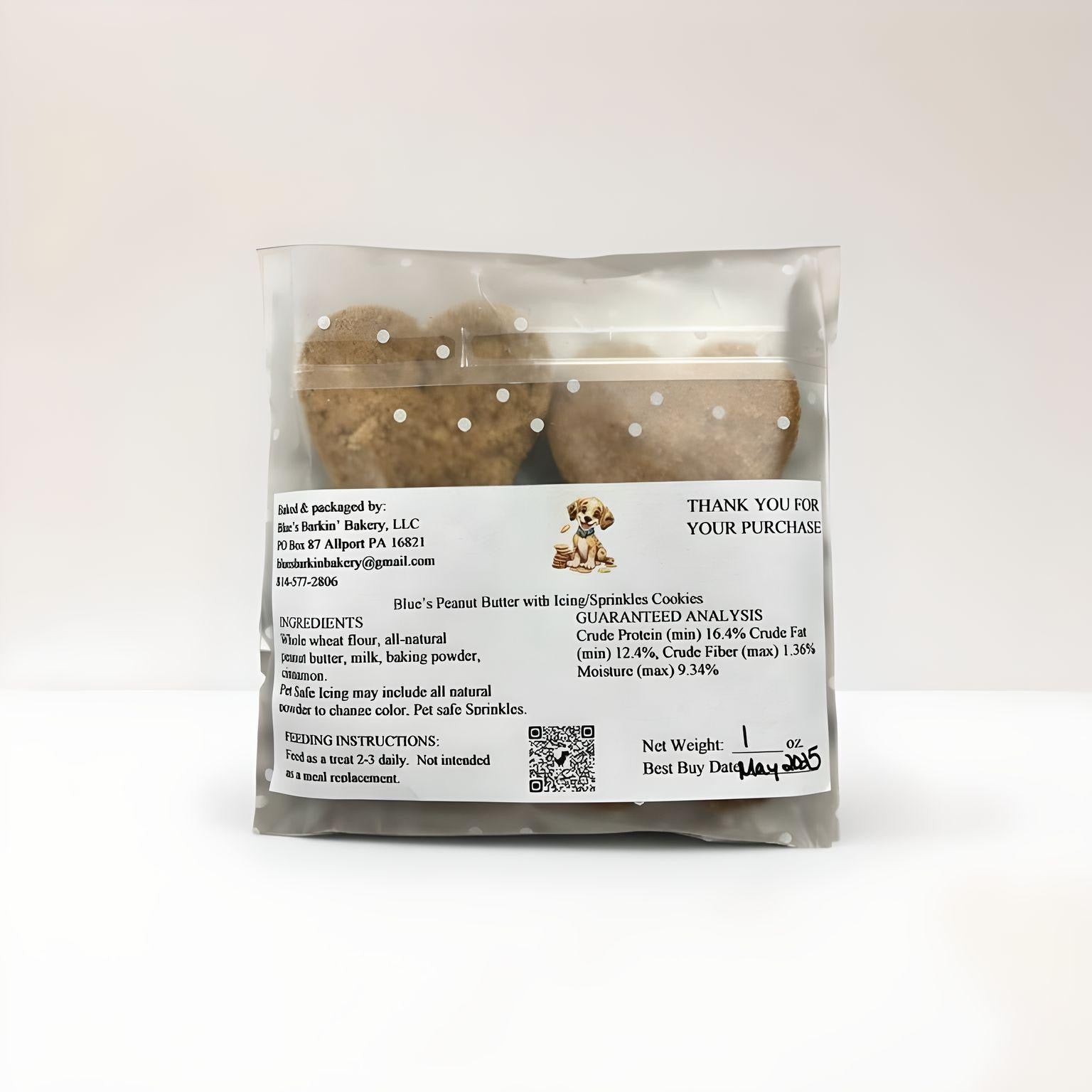 Bag of treats includes 1 oz. of stamped peanut butter dog treats made fresh at Blue's Barkin' Bakery in Allport, Pennsylvania.
