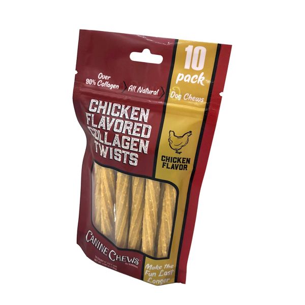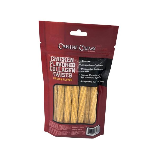 Canine Chews Collagen Twists are a great rawhide free solution for your furry friend. These all natural treats are a wonderful addition to your daily interaction with your pup. These treats are a great alternative to traditional rawhide. Delight your dog with a highly palatable chew that will also help clean their gums and teeth.