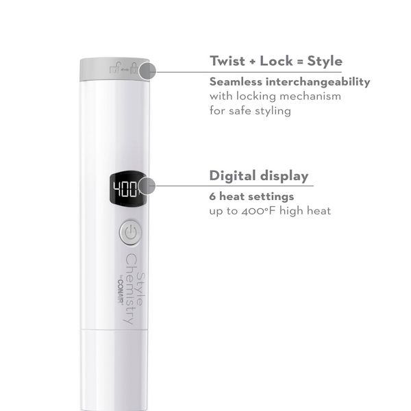 Advanced Heat Technology: Up to 400°F heat with the Style Chemistry Power Handle Base.