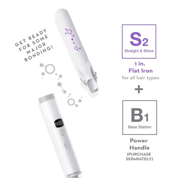 Achieve sleek hair effortlessly with the Style Chemistry by Conair® 1 in. Flat Iron Attachment. Its ceramic coating ensures smooth, shiny results for every hair type, length, and texture. The Ceramic Technology distributes heat evenly, to avoid damaging hot spots and enhance the hair's natural shine. With 6 temperature settings and instant heat technology, the flat iron is compatible with fine, thick, wavy, or textured hair, offering versatility, control, and flawless results. Exclusively compatible with the Style Chemistry by Conair® Starter Pack, the flat iron seamlessly integrates with the interchangeable power handle using a secure locking mechanism for safe styling. Transform your hair routine with this need-based styling system to achieve salon-quality results at home. Discover the confidence of flawlessly styled hair, day after day. Easily glide through your styling routine with the ergonomically designed flat iron, featuring a lightweight body for comfortable use. Its 1-inch-wide ceramic plates heat up quickly and evenly, ensuring rapid styling while protecting your hair from damaging heat. If you're aiming for straight locks that shine, this flat iron delivers consistent performance for salon-worthy looks at your fingertips. Embrace versatility and innovation in hair care with the Style Chemistry collection by Conair®, designed to elevate your styling experience with every use.