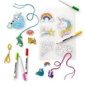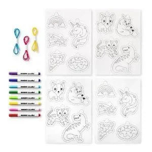 Description: For a fun, easy craft that kids and kids at heart alike are sure to love, you can't go wrong with the Create-Your-Own Shrink Art Kit from Mondo Llama™. This craft set comes with everything needed to make 18 pieces of shrink art — there's four sheets of cute images like donuts, unicorns and sloths, eight markers and three colors of string. Simply use the markers to color in the shrink art images, cut them out and bake in the oven (with adult supervision!) to create, then use the string to tie on zipper pulls or hang throughout your home. Make it bright. Make it bold. Make it up. And most of all, make it you. Find your creativity in the making with Mondo Llama.