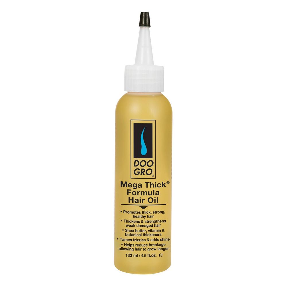 DOO GRO® Mega Thick® Formula Hair Oil helps thicken and strengthen weak, damaged hair. Its special blend of meadowfoam seed oil, vitamins, herbs, shea butter and botanical thickeners provides needed conditioning for strong, healthy, shiny hair. Moisturizes dry scalp on thinning edges and temple areas.