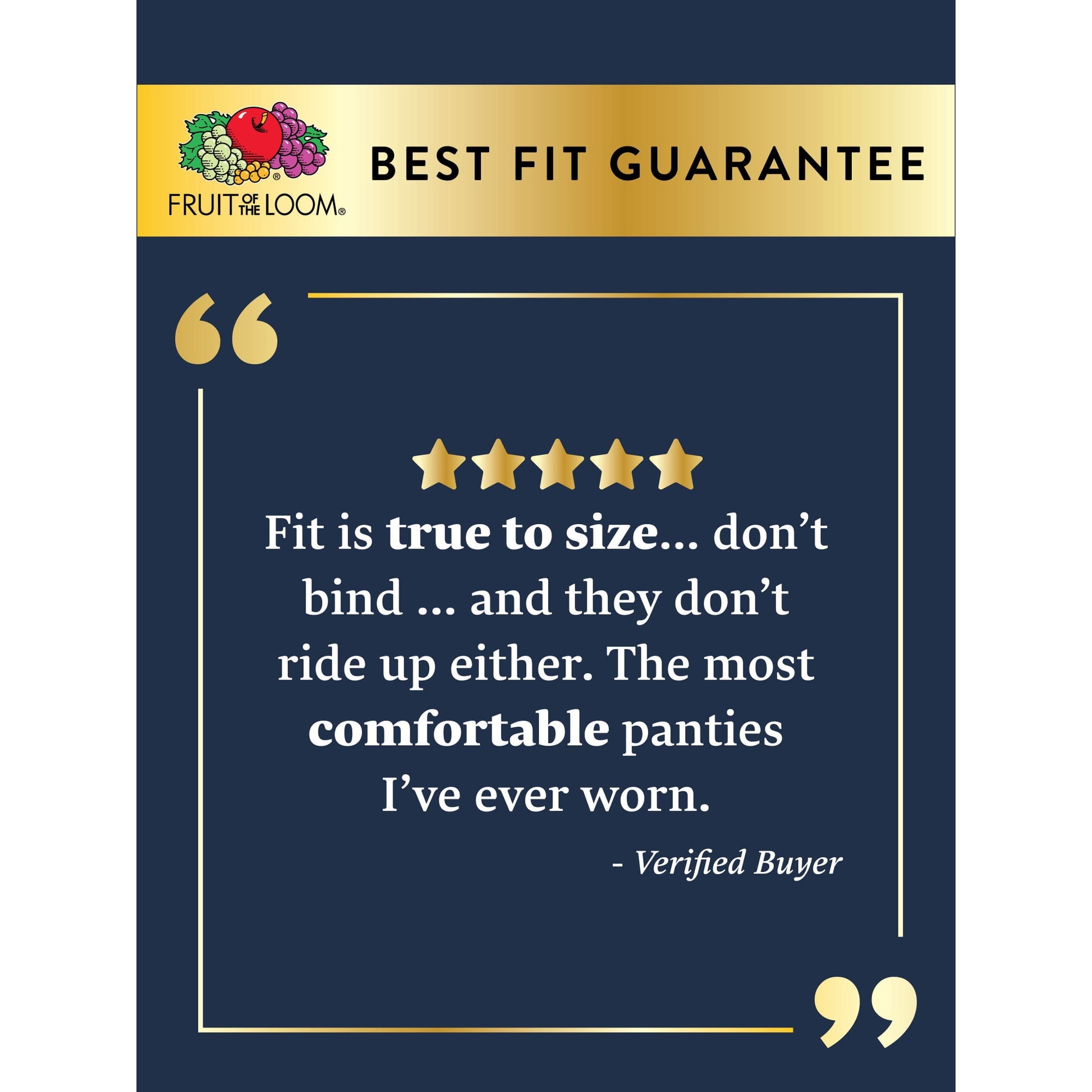 Don't hesitate on these 360 Stretch Microfiber Bikinis. The sleek, premium microfiber fabric has a luxuriously smooth and lightweight feel that moves with you. It also features a stretchy elastic waistband that wont roll, dig, or pinch. Plus it stays in place. Thoughtfully designed for ultimate comfort. The women's classic bikini silhouette features a moderate rise that sits slightly above the hips and offers moderate seat coverage. As always, Fruit of the Loom panties are tag-free and made with a 100% cotton liner for extra comfort.