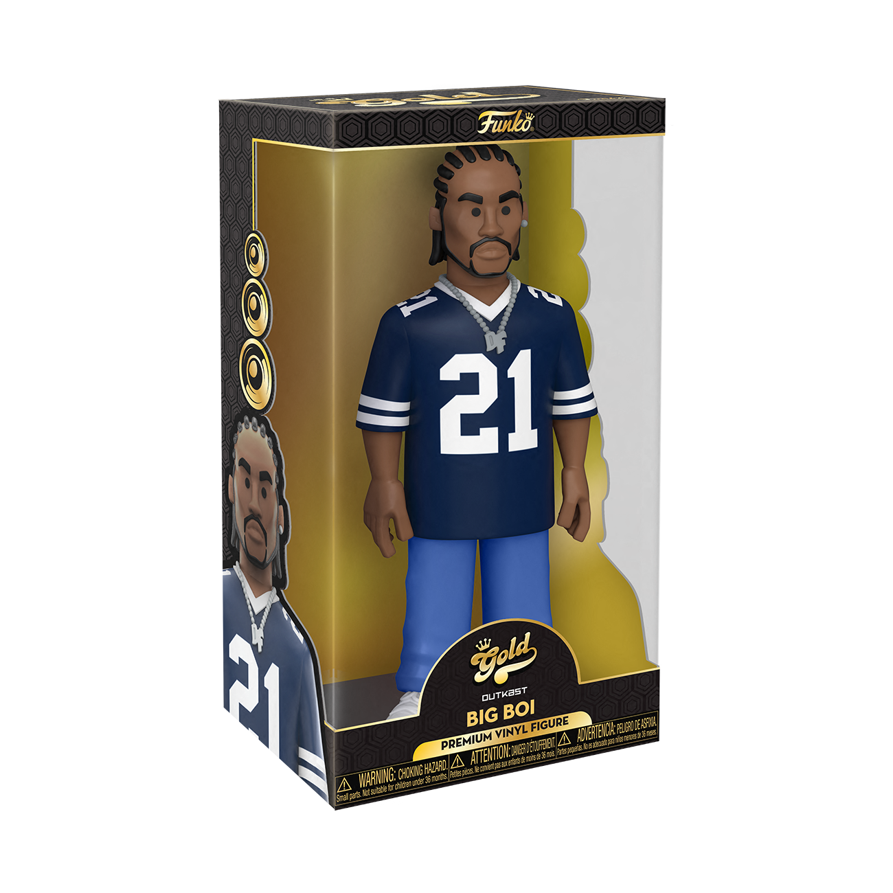 Go for GOLD in your music collection with the new Funko GOLD Big Boi premium vinyl figure. Big Boi is ready to join his OutKast member, André3000, while wearing his navy jersey for this 12-inch tall collectible. GOLD is the perfect way to commemorate some of your favorite, iconic music artists in your collection, and each figure comes in a sleek, display-ready box that is easy to stack with other GOLD collectibles. Vinyl figure is 12-inches tall.