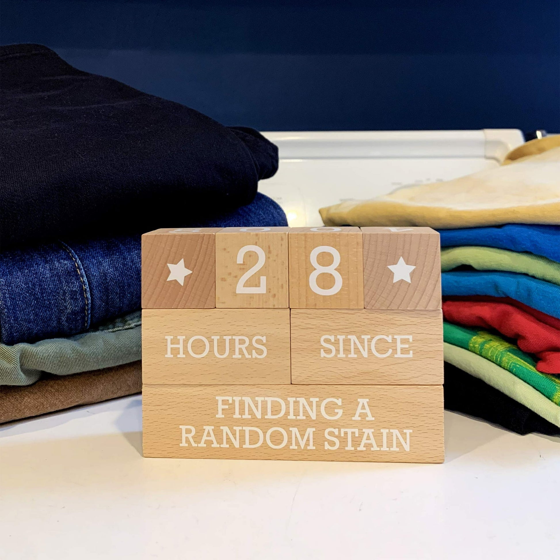 - ENDLESS POSSIBILITIES: Includes 7 wooden blocks to help you keep tabs on life with kids. This set includes numbers & stars for the top row, days/hours/minutes/weeks & since/until for the middle row, and 1 bottom block with phrase options.