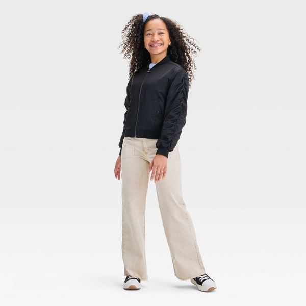 Girls' Solid Blouson Jacket - Medium/Black