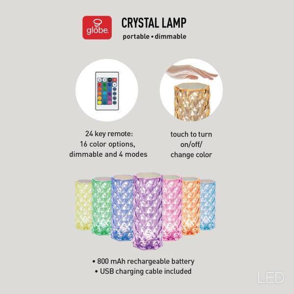 Globe Electric Crystal Lamp: Touch Sensor, LED Bulb, Multicolored, Battery Powered, Novelty Table Light, 8.5" Height