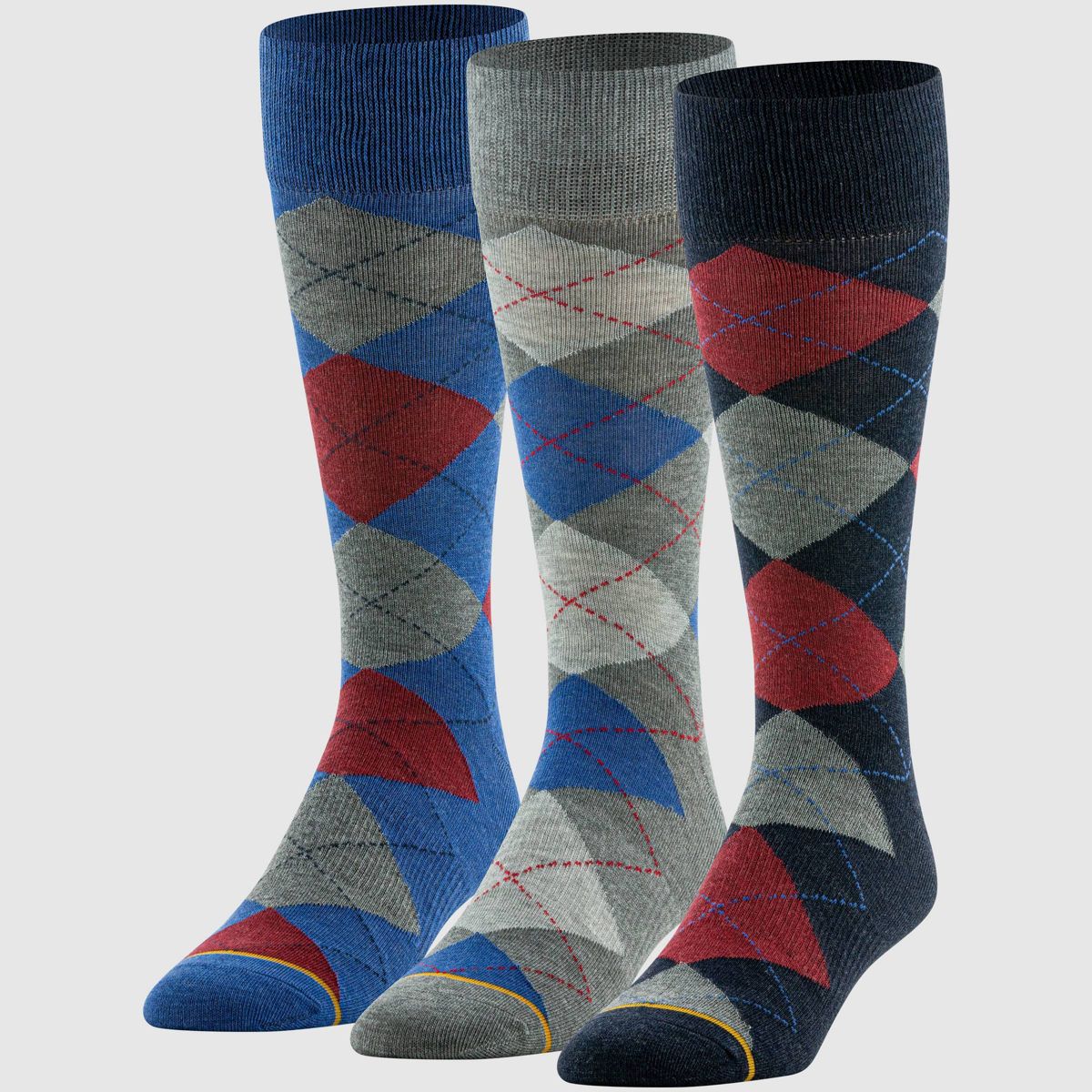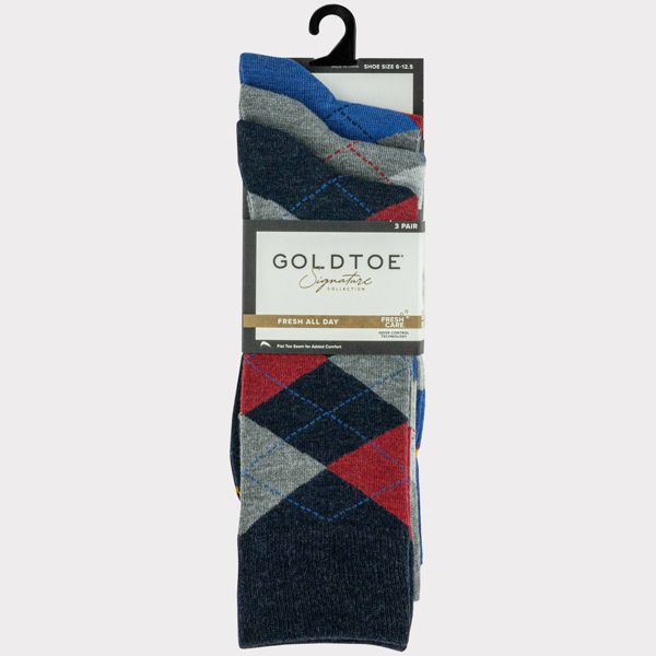 Goldtoe Signature Collection Men's Argyle Crew Socks 3pk - Gray/Red/Navy Blue 6-12.5