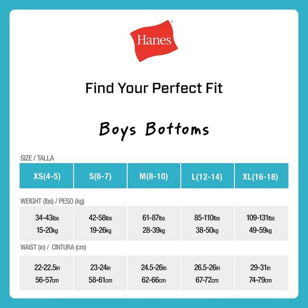 Designed to go as hard as he does, these Hanes boys' boxer briefs are crafted from an ultra-durable ringspun cotton or cotton-blended fabric that is softer than ever. A Comfort Flex® waistband provides a flexible fit, while the moisture-wicking fabric will keep him cool and comfortable - no matter what the day may bring. Finished with a Tagless® interior, this boys' underwear features no-ride-up legs that are designed to stay in place. Even better, this underwear for boys comes in a variety of solid colors so he can express his own style. Available in a Super Value 10-pack - so he always has a clean pair of Hanes underwear.