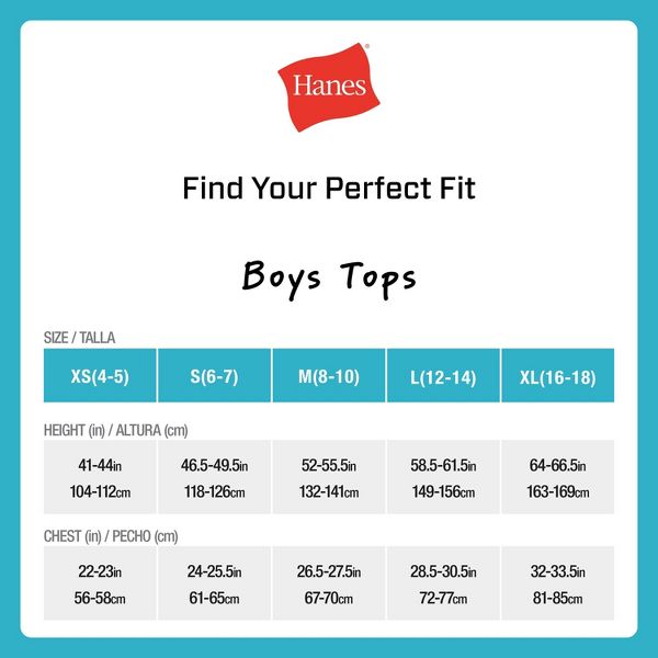 Hanes EcoSmart® boys' crewneck undershirts are crafted from lightweight, breathable fabric that resists shrinkage for a fit designed to stay true. You'll appreciate the moisture-wicking Cool Comfort® fabric that keeps him cool and comfortable. Plus, the Tagless® interior means no scratchy tags bunching up. And thanks to the famous Hanes lay-flat collar, these boys' t-shirts look great layered under polos, dress shirts, and more.