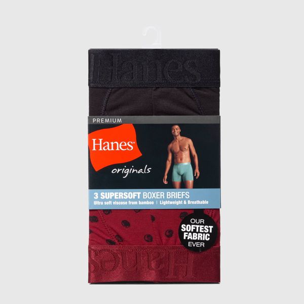Indescribably soft. So comfortable you'll forget you have it on. Hanes Originals Premium Men's Boxer Brief underwear is made from our softest fabric EVER - a luxurious viscose from bamboo fabric that is super lightweight and engineered to beat the heat. A soft and stretchable waistband and soft seams that help reduce chafing team up for all-day comfort. An elevated design features a lower rise and a modern fit. You’ll love the smooth Tagless® interior and the no-ride-up fit in moisture-wicking underwear that feels as cool as it looks. Hanes Originals. Who says you can’t have style and comfort? (Not us.)