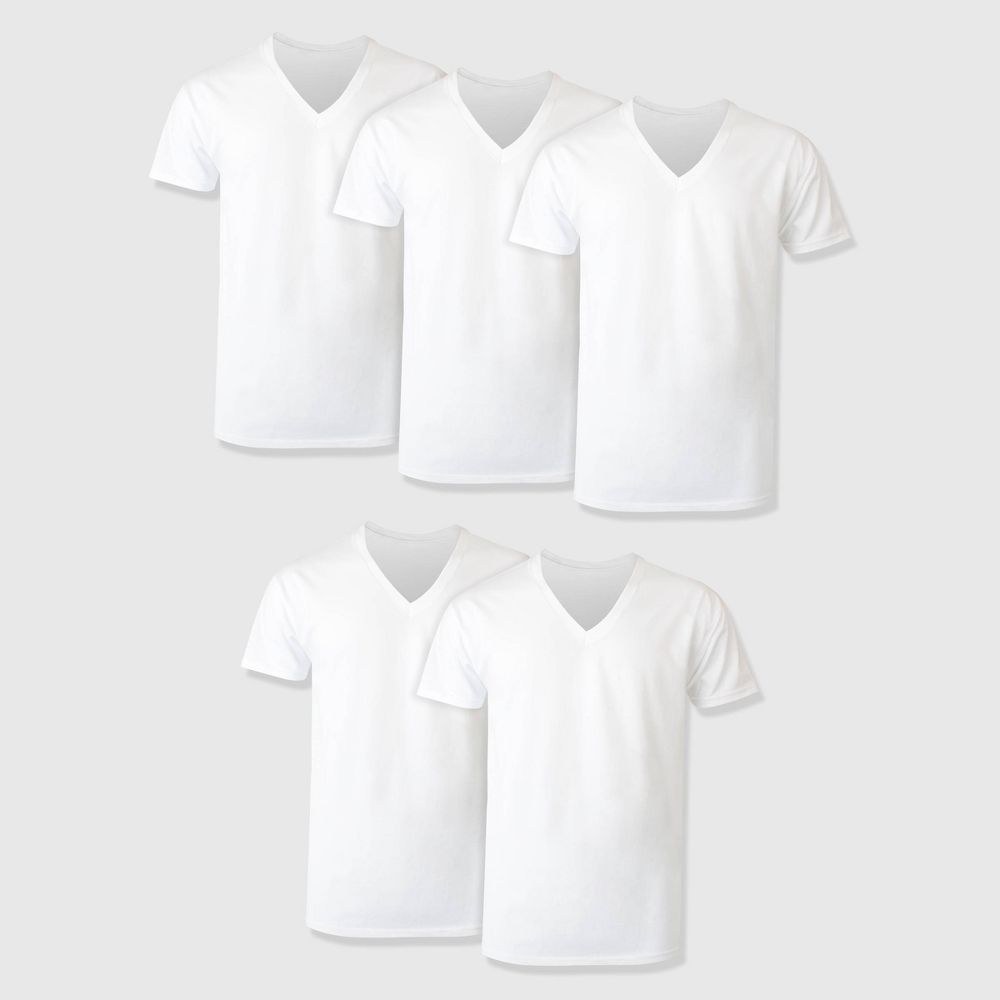 Hanes Premium Men's Short Sleeve V-Neck T-Shirt 5pk - White, Medium