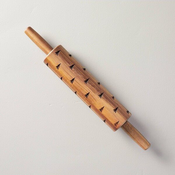 Bring festive cheer to holiday cookies with the help of this Engraved Christmas Tree Pattern Wood Rolling Pin from Hearth & Hand™ with Magnolia. Made from acacia wood, this rolling pin features long handles at the sides to allow you to effortlessly roll it over cookie dough. Best of all, it features allover engraved Christmas tree patterns that easily imprint onto your rolled dough to let you cut and bake sweet, festive-style cookies. Hearth & Hand™ with Magnolia: Gather • Create • Enjoy