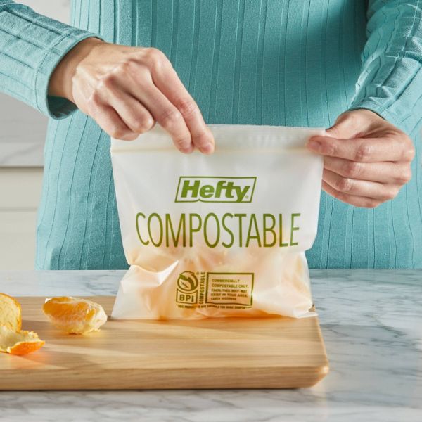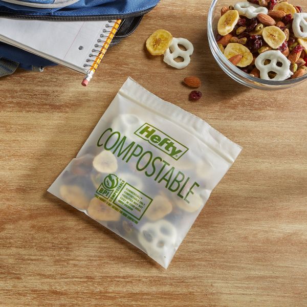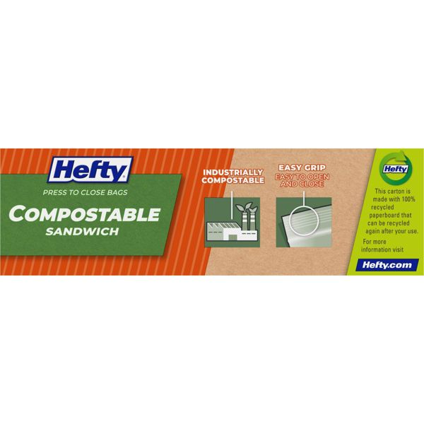 Compostable Sandwich Bags—This pack includes 50 sandwich size Hefty Compostable Press to Close Food Storage Bags