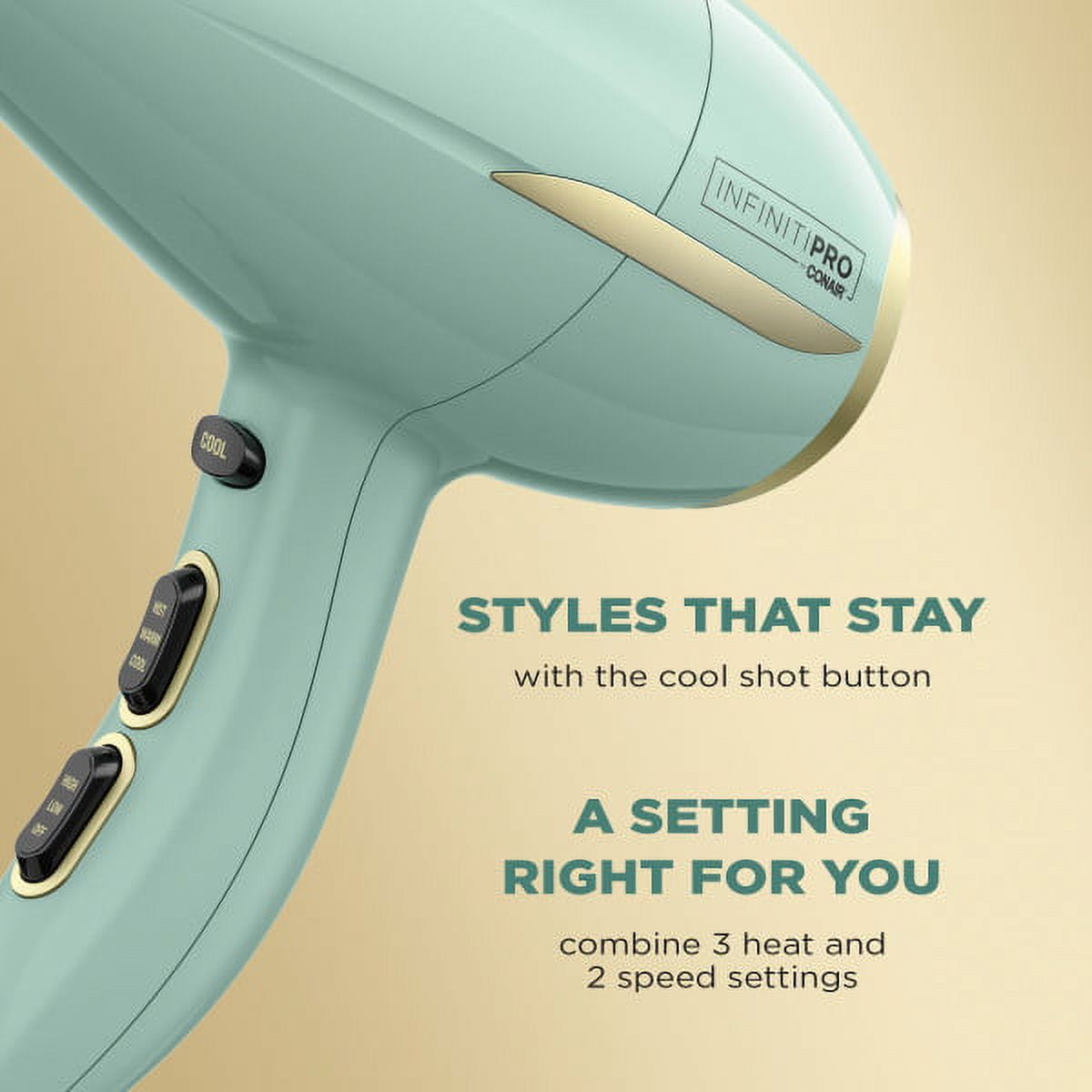 - No More Over-Drying: Achieve healthy-looking and more shine hair with the Conair Infiniti Pro Heat Protect Hair Dryer. The self-regulating Heat-Sense Technology gives you even heat for fewer hot spots and less heat damage, helping to avoid over-dried hair.