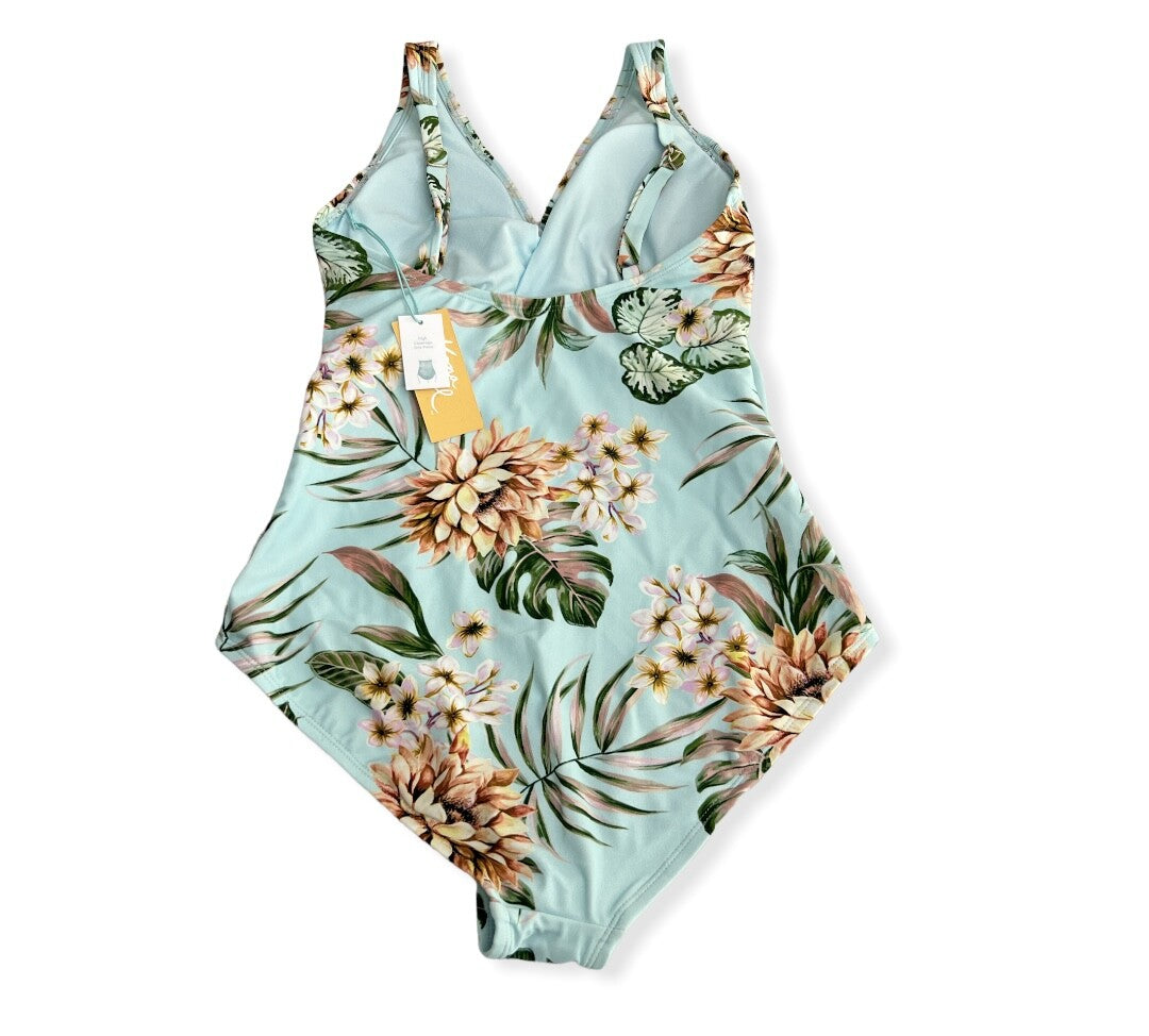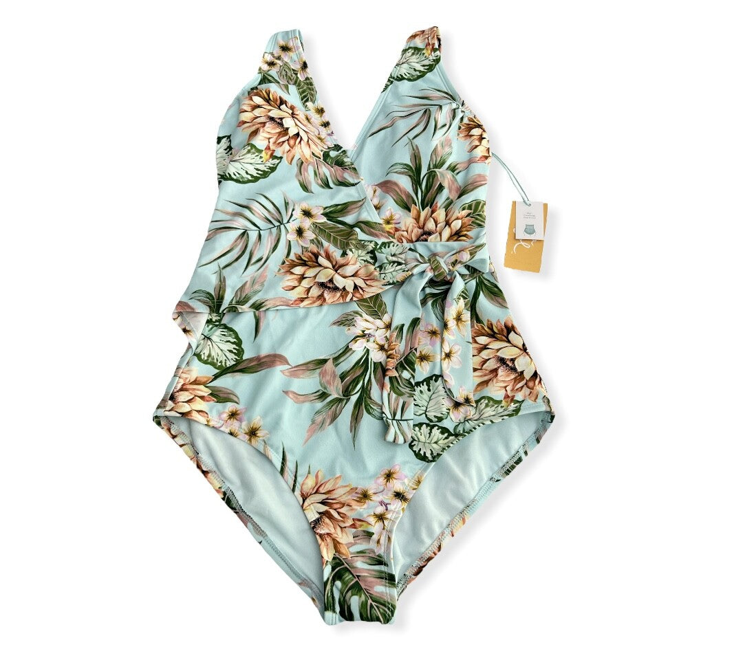 Kona Sol One Piece Swimsuit Sz L Full Coverage Wrap Tropical Floral Modest