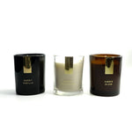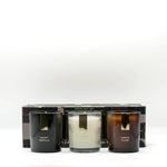 Enhance any space with this carefully selected gift set, featuring three beautifully crafted scented candles: Smoky vanilla, sueded rosewood, and amber glow. Smoky vanilla blends the warmth of smoky embers with the sweet richness of vanilla, creating a cozy atmosphere. Sueded rosewood combines smooth suede with the golden warmth of amber, transforming your space into a luxurious retreat. Amber Glow opens with bold tobacco leaf and spice, unfolding into a comforting blend of tonka, balsams, and cocoa. Each fragrance brings a unique atmosphere, adding warmth and charm to your home or office. With their sleek glass jar design, these candles make a perfect gift for any occasion or a relaxing treat for yourself.