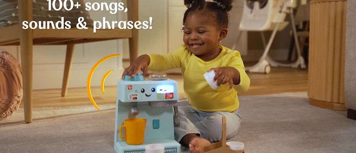Toddlers can “brew,” serve and share pretend coffee with this interactive barista station learning toy featuring 100+ songs, sounds, tunes and phrases
