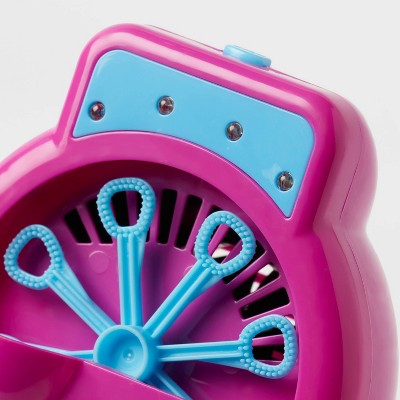 Description: Make summer more fun for the whole family with the Light Up Bubble Maker from Sun Squad™. This bubble maker features a blue stand with purple bubble maker for an eye-catching look. The rotating wands help release a constant stream of endless bubbles, while the fill line makes it easy to see the solution. Made with plastic, this bubble maker comes with bubble solution and works with 4 AA alkaline batteries (not included). Best of all, the bubble solution is non-toxic and is made without parabens and phthalates so you can feel good about your kids using it. Sun Squad™: Ready for fun.