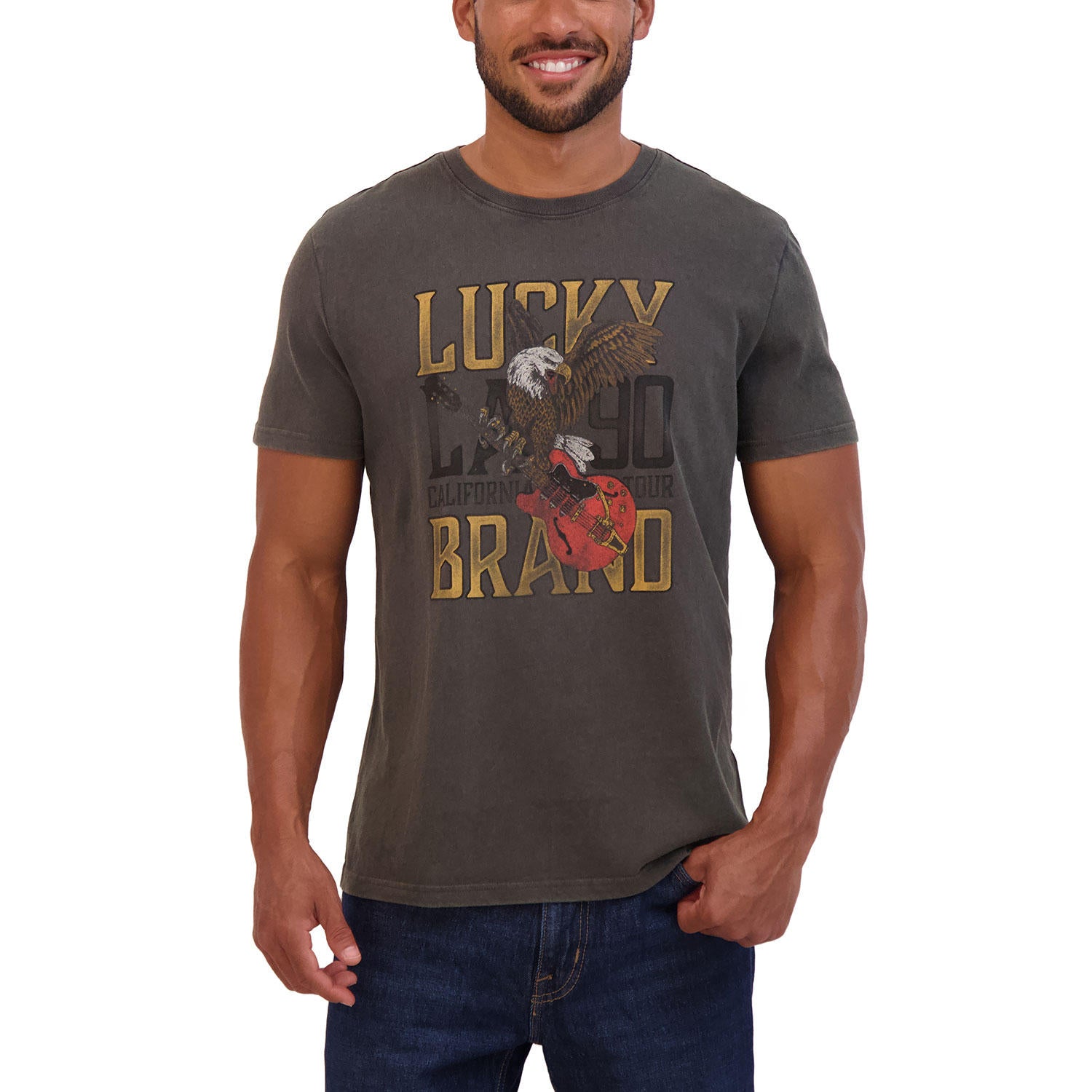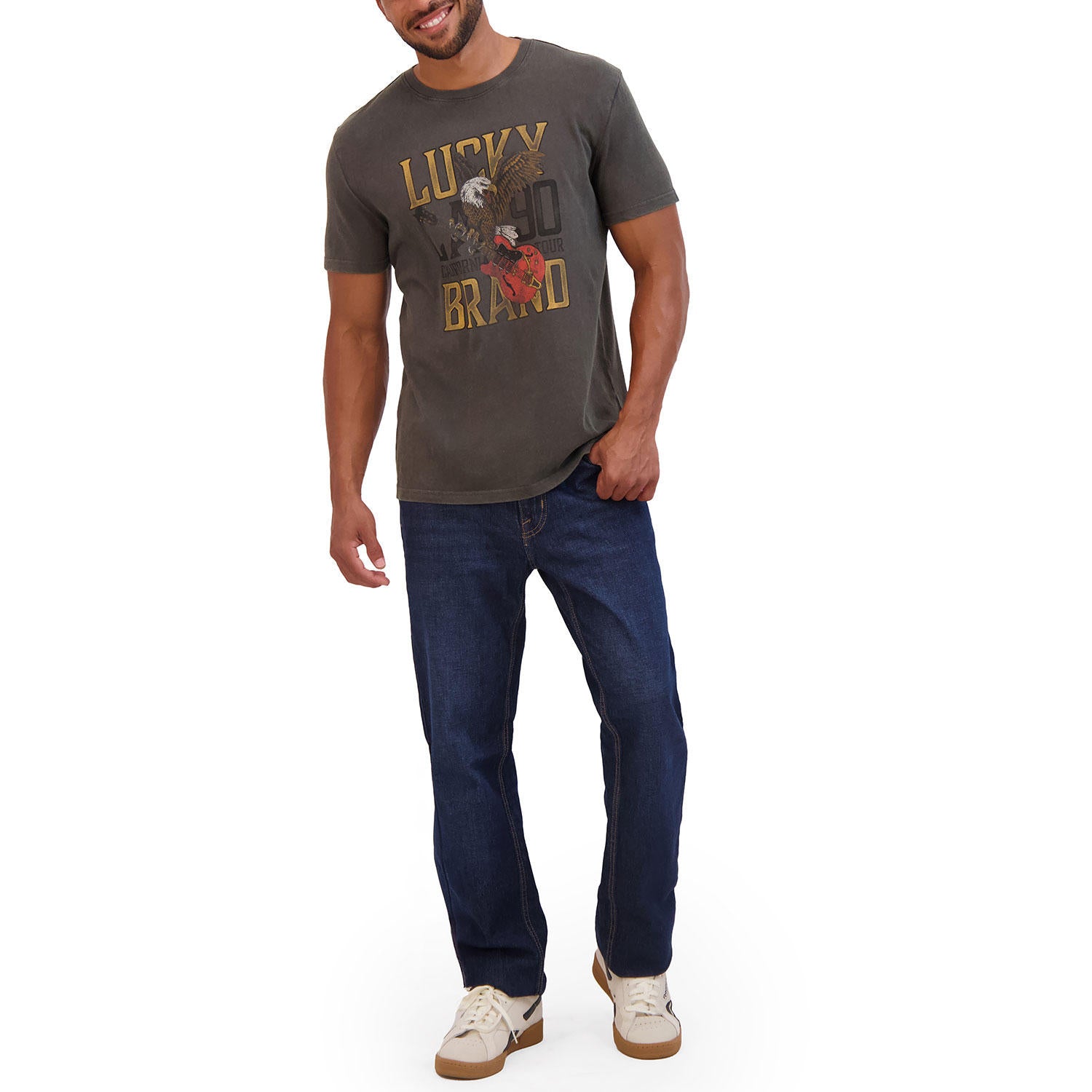 A versatile wardrobe style ideal for any day of the week, the Lucky Brand Men’s Graphic Crew Neck Short Sleeve T-Shirt is made from an ultra-soft cotton fabric that keeps you feeling comfortable all day long. Designed with a ribbed crew neck collar and straight hem, this short sleeve tee is the go-to style for hanging out with friends, lounging at home and so much more.