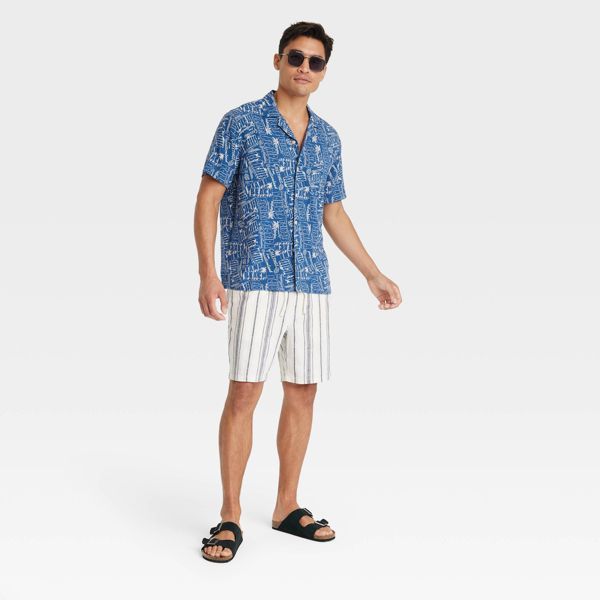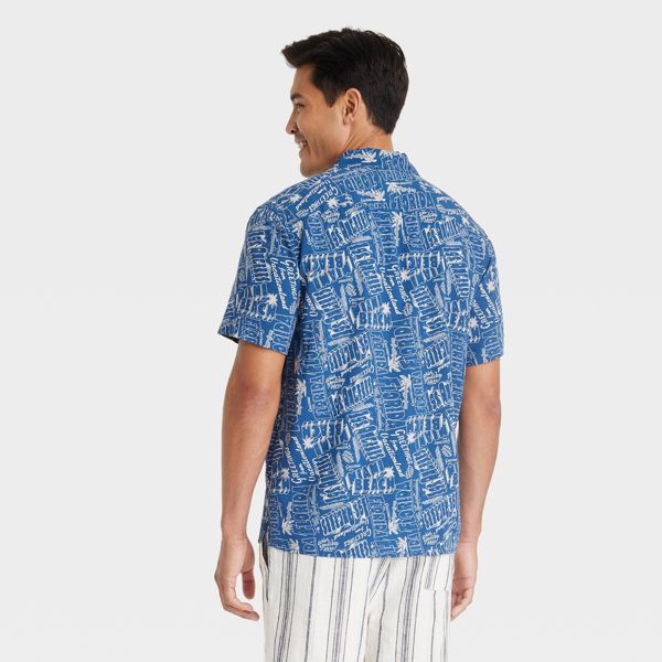 Amp up your warm-weather style in this Short-Sleeve Button-Down Shirt from Goodfellow & Co™. Tailored in a casual-fit silhouette, this short-sleeve button-down shirt is made from soft midweight fabric for all-day breezy comfort. Designed with a collared neckline, front full-length button-down placket and a length that hits below the waist for versatile styling, it features a vibrant print to add fun, summery vibes to your day.