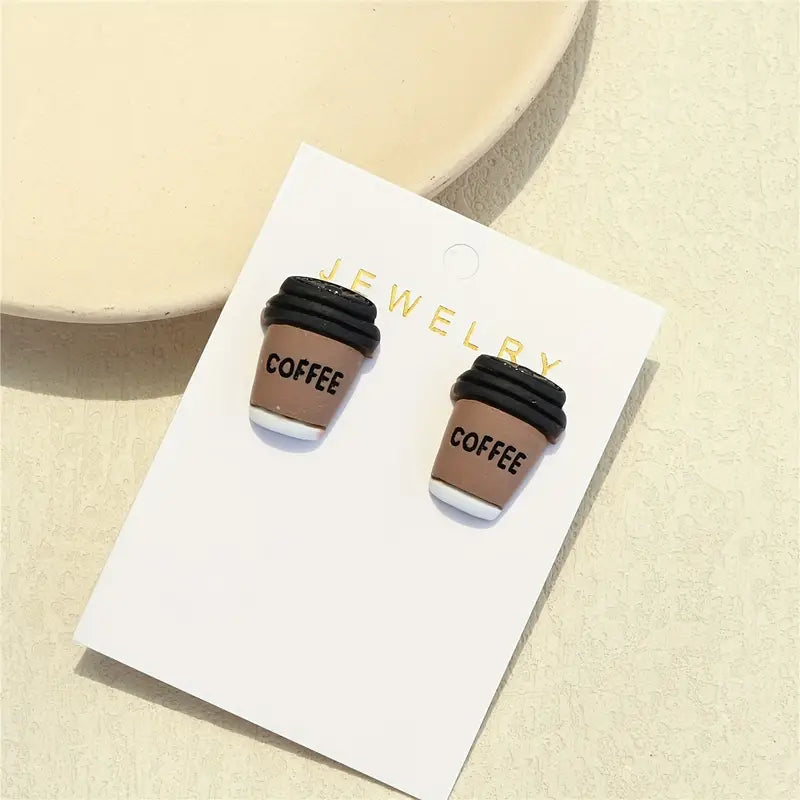 Mini Coffee Cup Design Stud Earrings