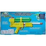 This Nerf Super Soaker water blaster has a tank made with recycled plastic bottles, and comes in a recyclable, paper-based package which is plastic-free except for tape and glue. At Hasbro, were