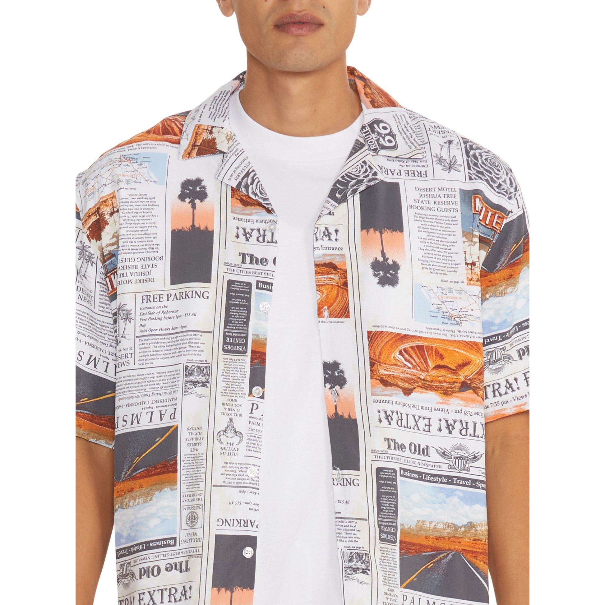 - Men's Print Button-Up Shirt with Short Sleeves from No Boundaries