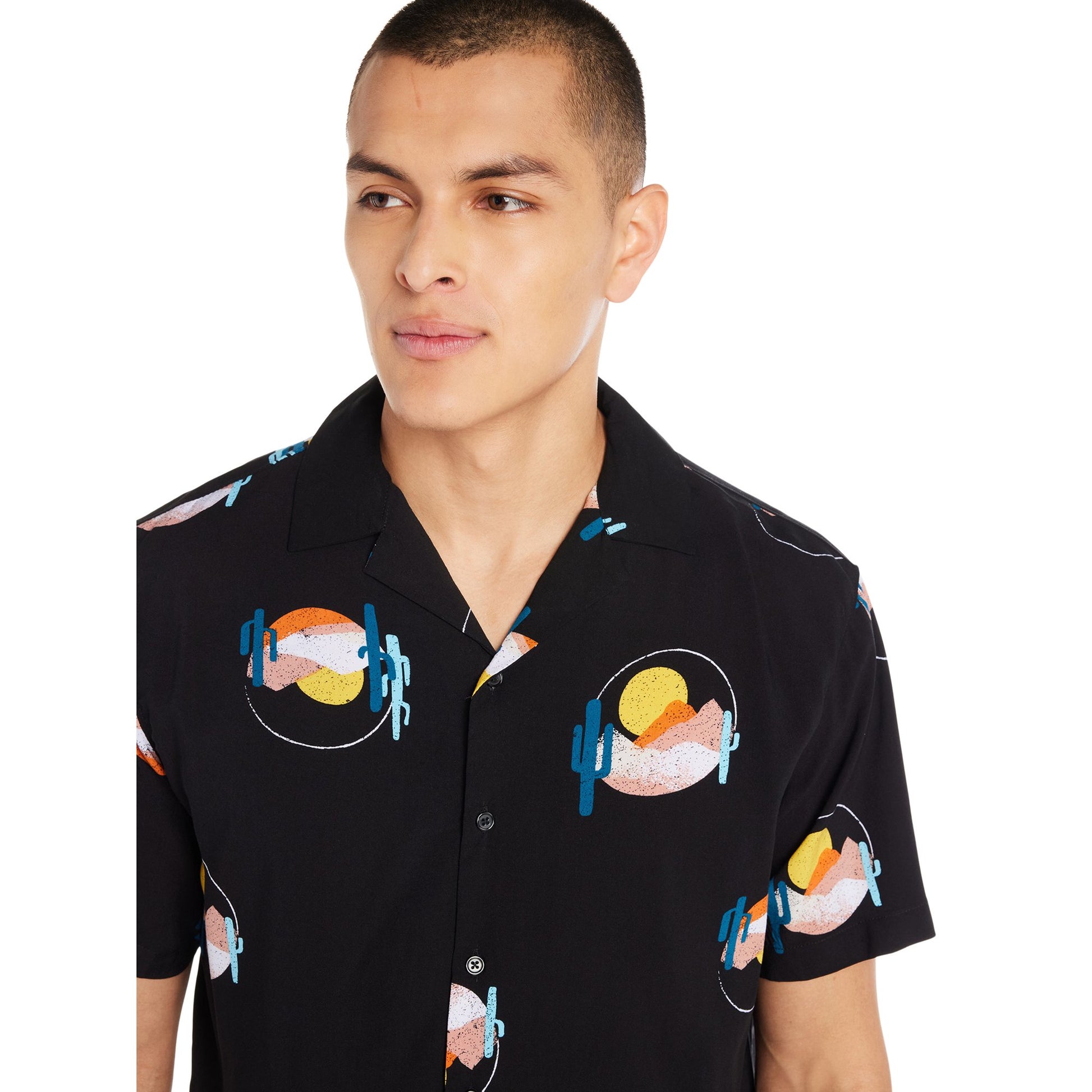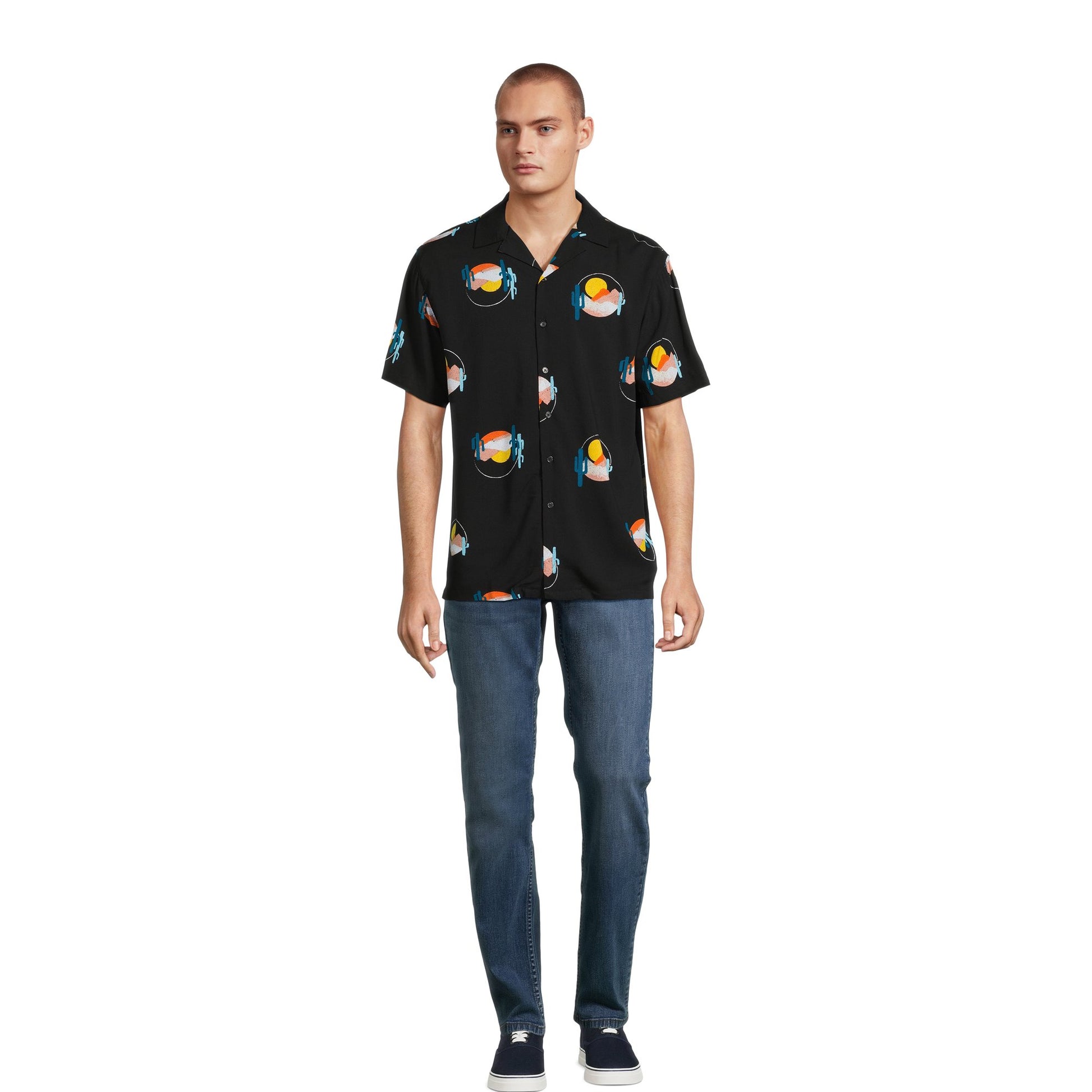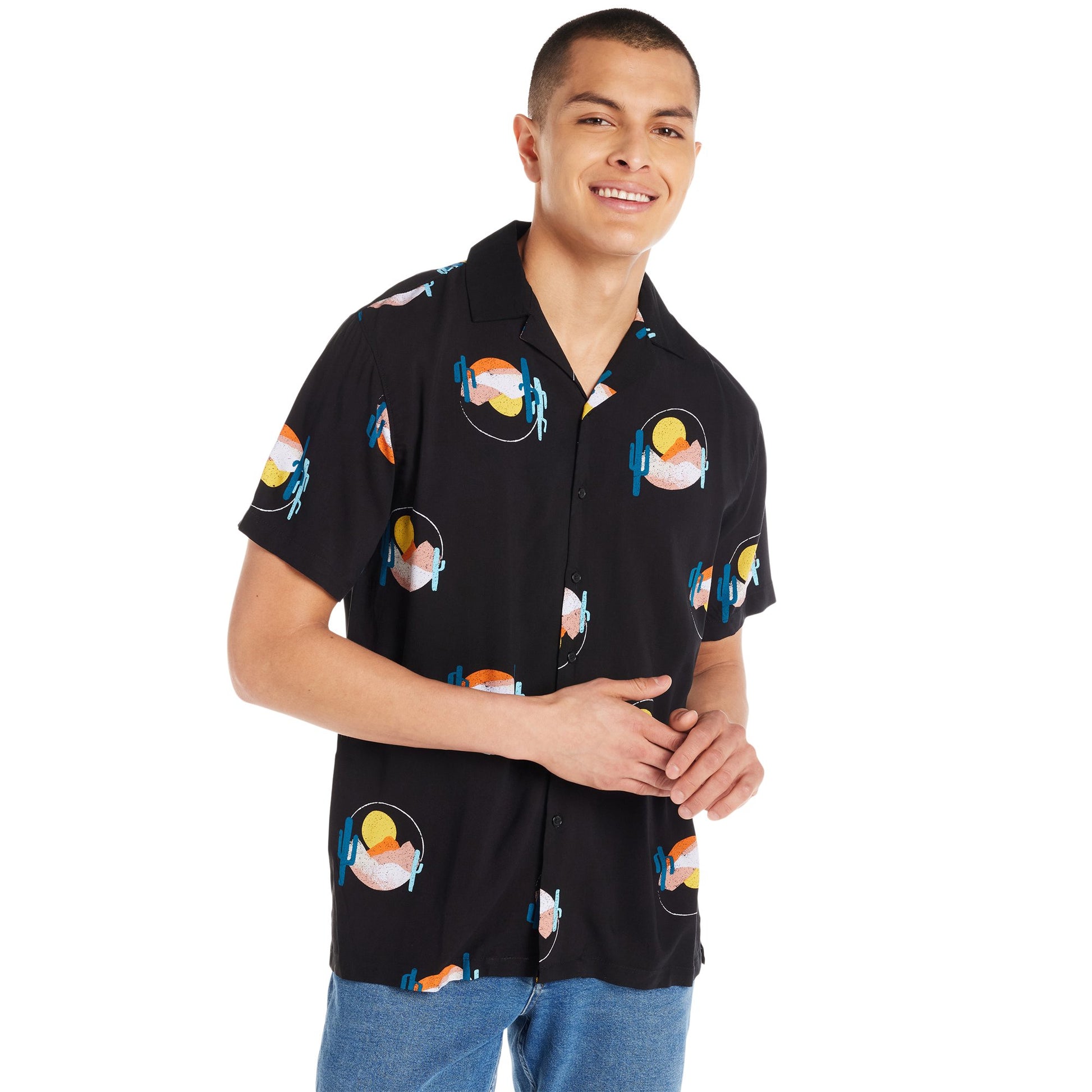 - Men's Print Button-Up Shirt with Short Sleeves from No Boundaries