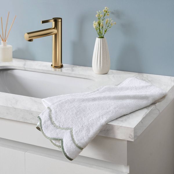 Add a touch of whimsy to your bathroom with the Peri Home Scallop 2-piece Hand Towel Set. This everyday bath accessory gets a playful pop from the embroidered scallop hem edge. Crafted from soft 100% cotton for a soft feel with every use.