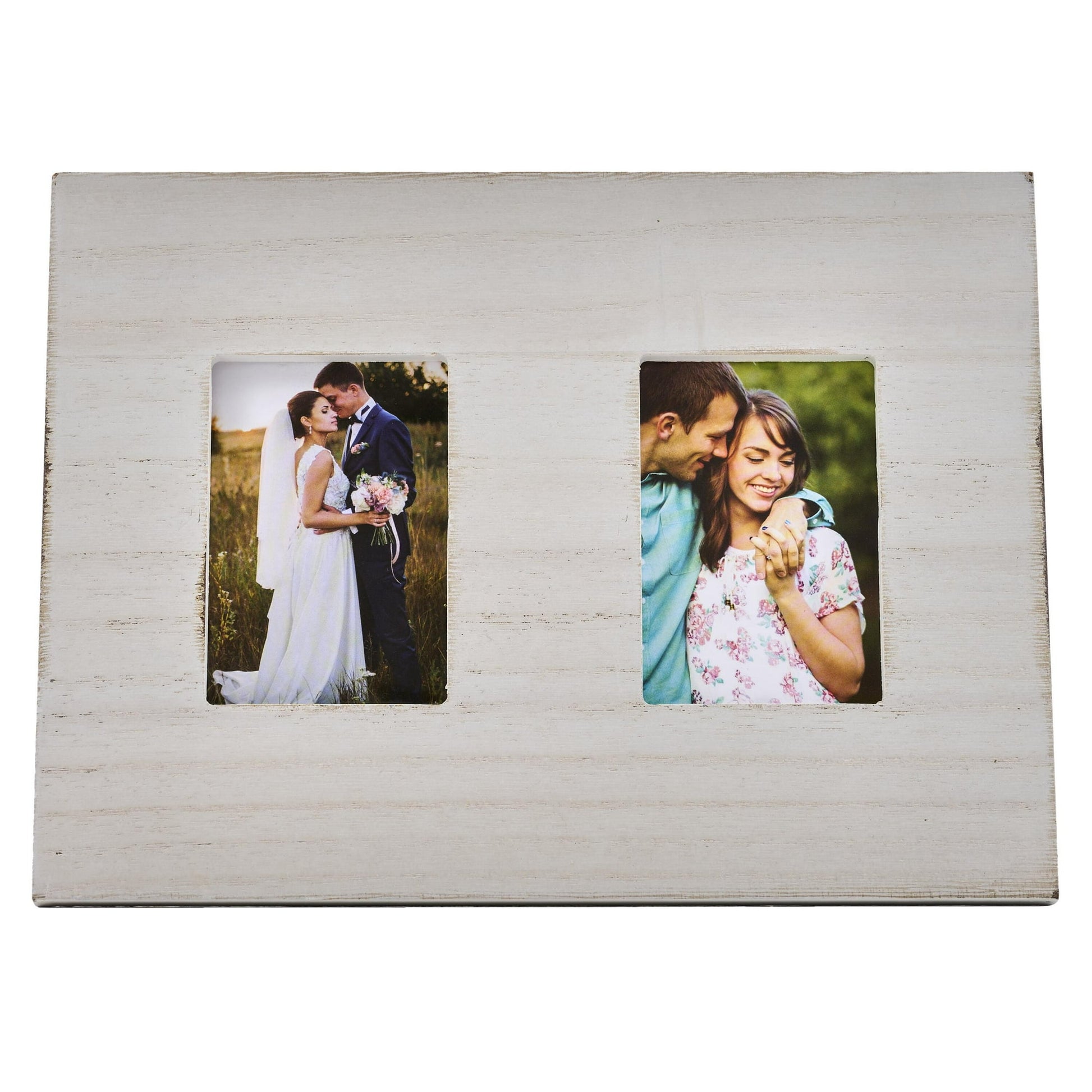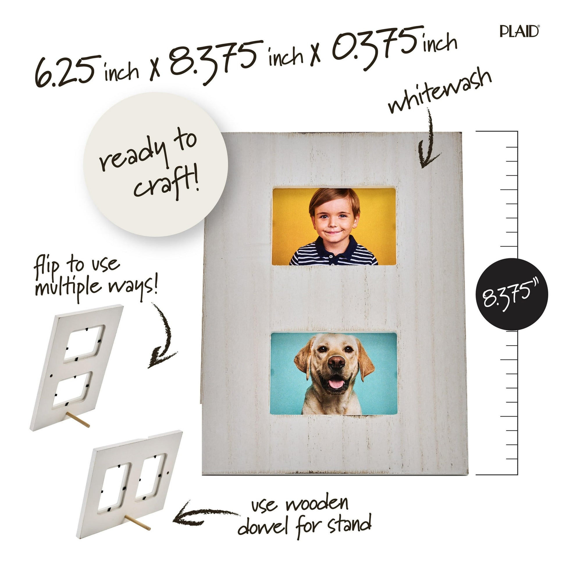Plaid Wood Surfaces Double Window Whitewash Frame, 6" x 8"