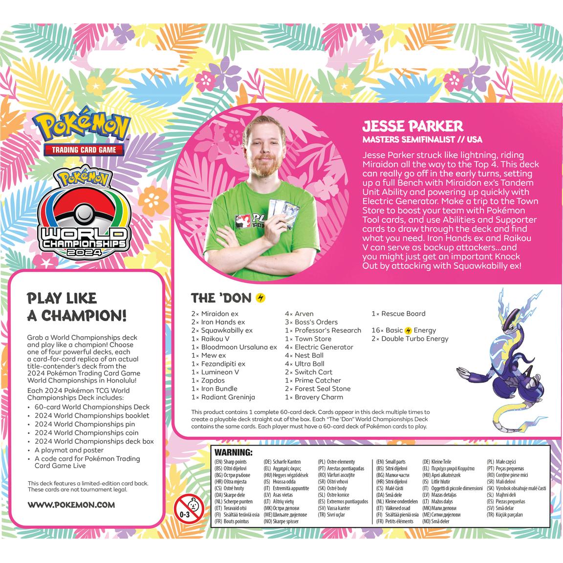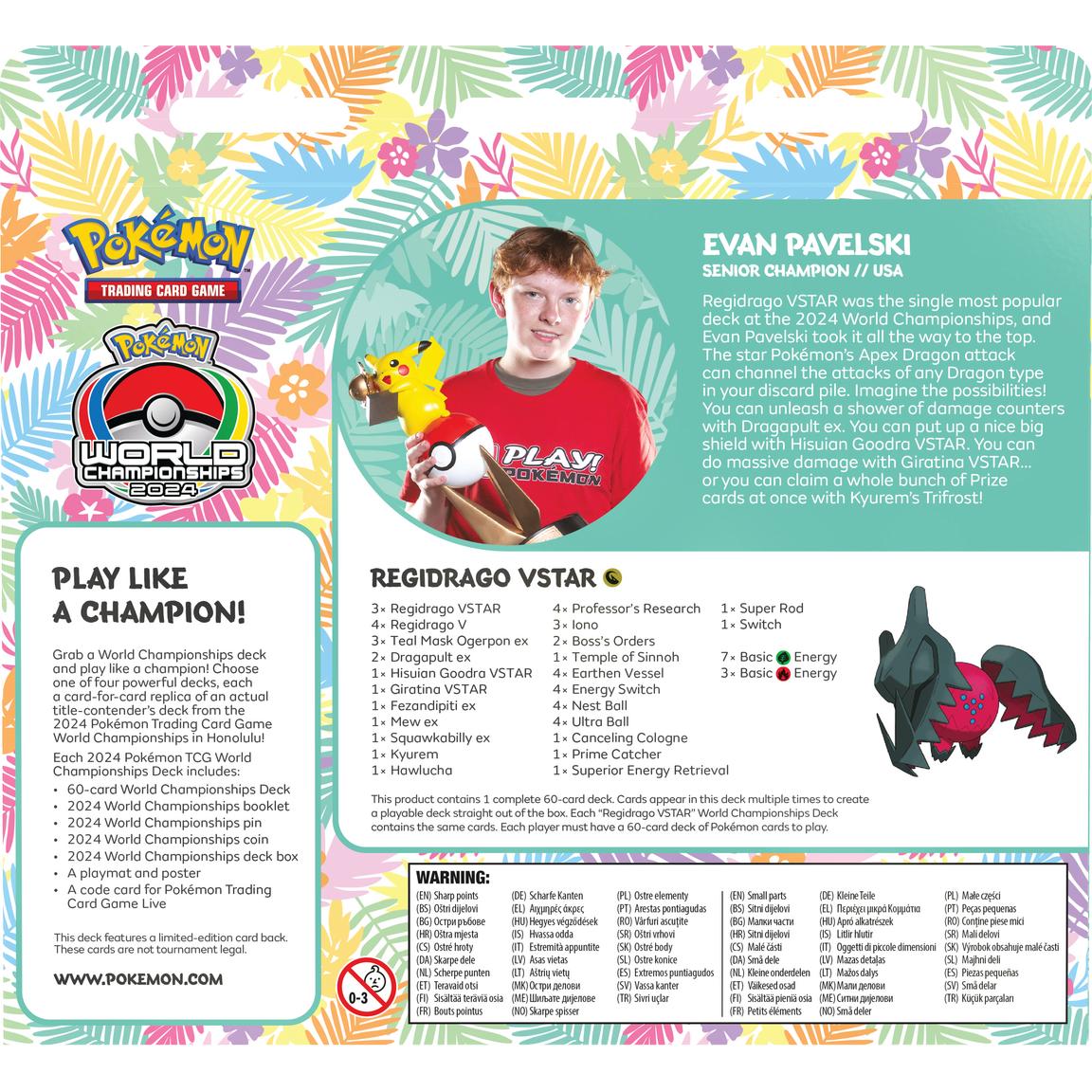 PLAY LIKE A CHAMPION! Grab a World Championships deck and play like a champion! Choose one of four powerful decks, each a card-for-card replica of an actual title-contender’s deck from the 2024 Pokémon Trading Card Game World Championships in Honolulu!