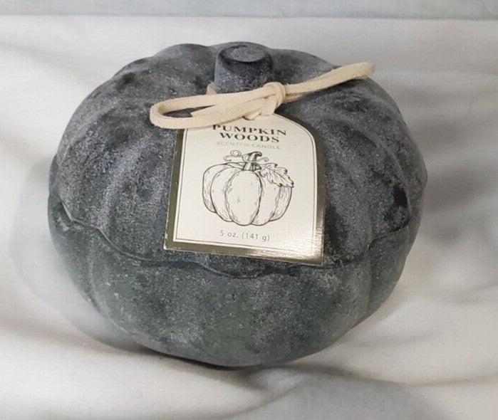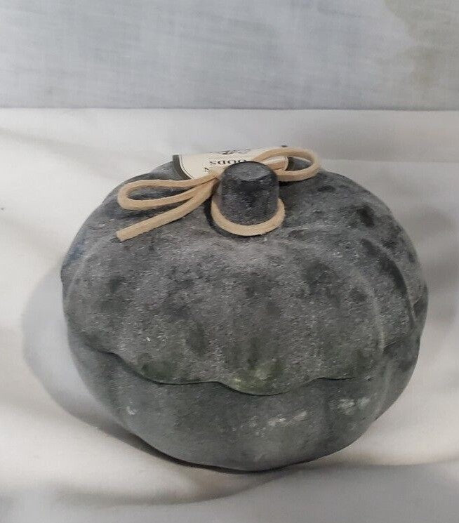 Description: Pumpkin Woods 5oz Two Wick Glass Pumpkin Jar Long Lasting Scented Candle Green. Refer to pictures for description. EE3.