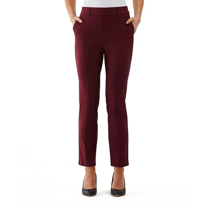 Rafaella Pull-On Belt Loops Functional Pockets Stretch Ankle Pant (Windsor Wine, 12)