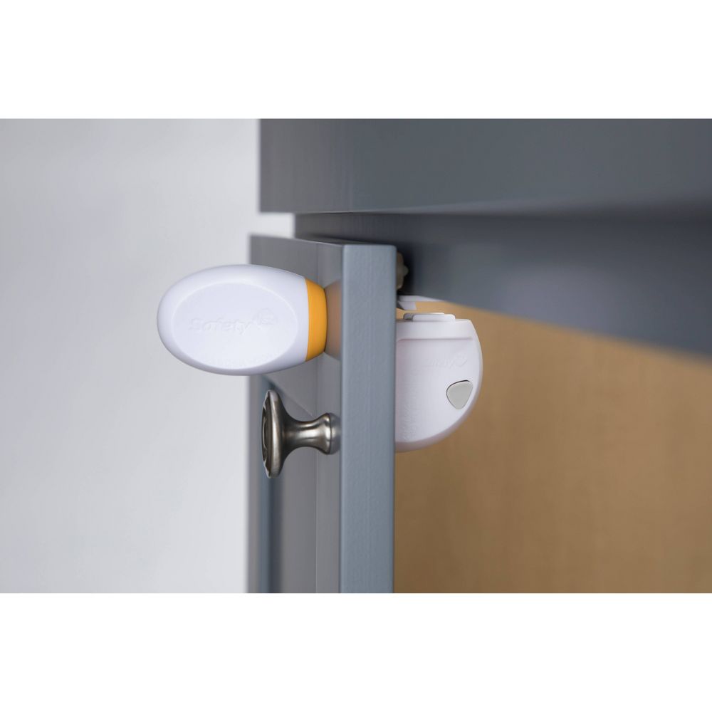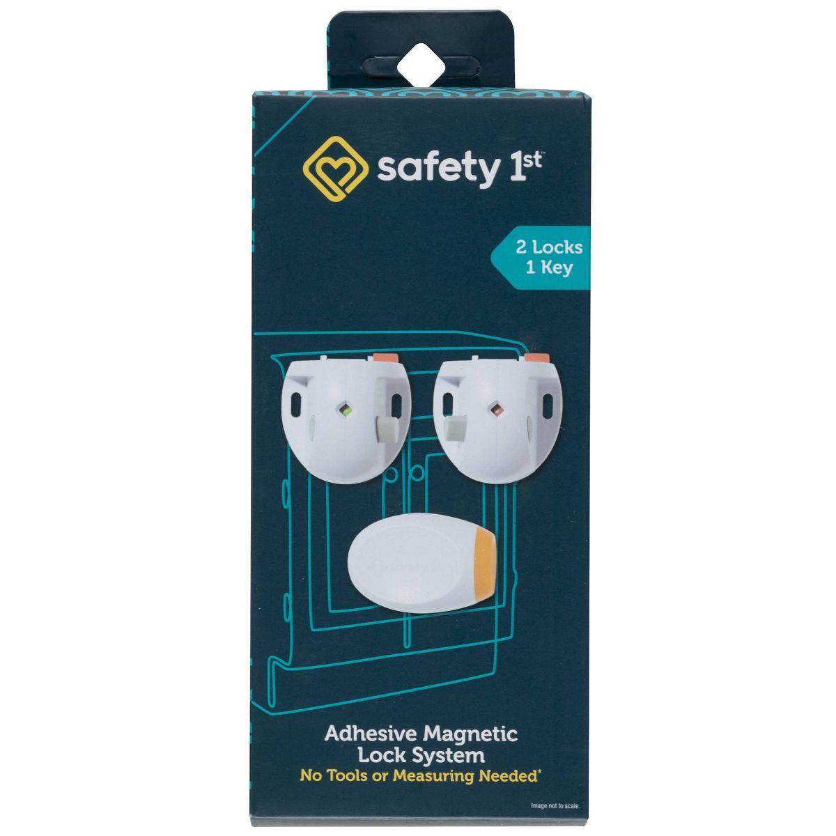 Get the safety lock system that has been proven stronger and help keep your little explorer from accessing off-limit cabinets and drawers. The Safety 1st Adhesive Magnetic Lock System is simple to install, just peel and stick. This kit comes with two locks and one key and includes a template that allows for perfect installation alignment, every time.