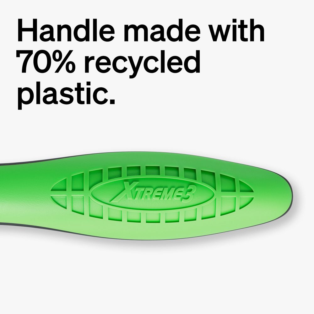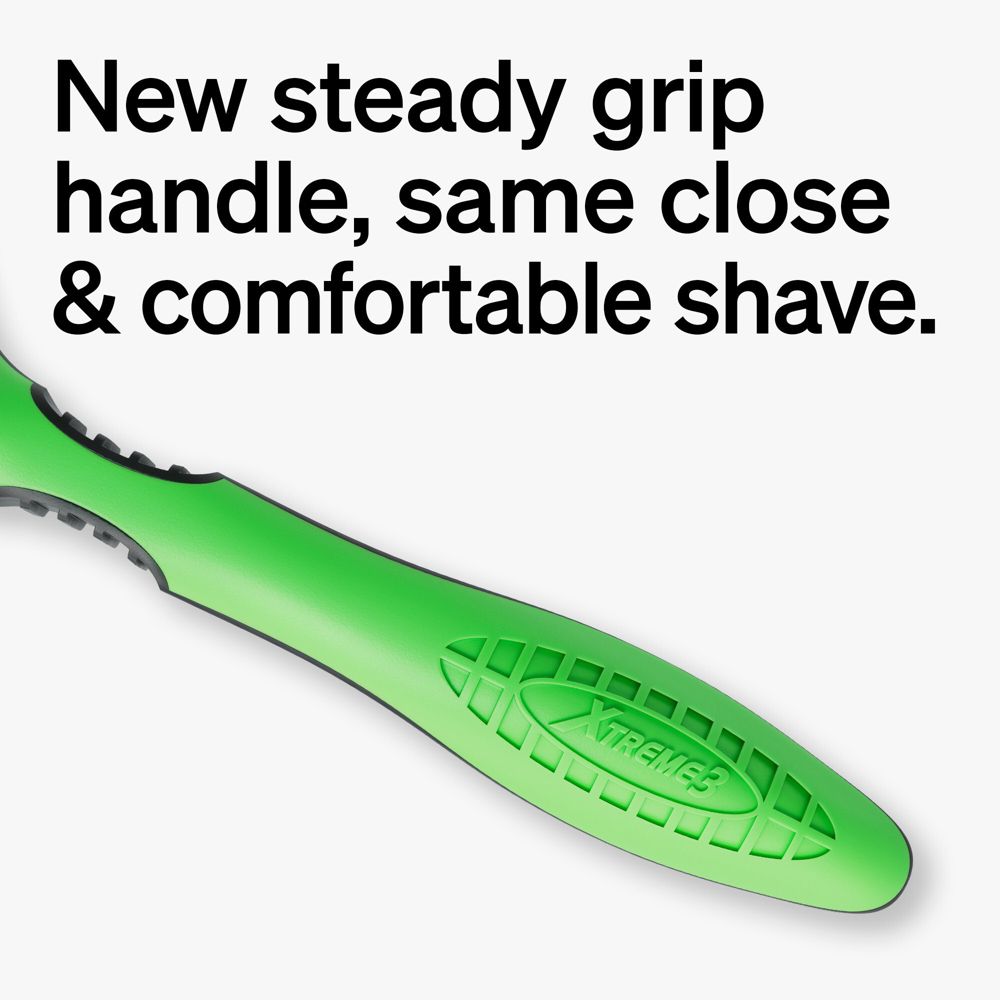 No two faces are the same. That’s why we designed the Schick Xtreme3 Sensitive with 3 flexible blades that flex and pivot to the unique contours of your face and head for an Xtremely close & comfortable shave. Schick Xtreme 3 disposable razors for men utilize our long-lasting razor blades, which provide up to 11 shaves per razor, for up to 88 shaves per pack. This 3 blade razor for men is specifically designed to be gentle on sensitive skin and features a dermatologist-tested lubricating strip, with aloe, to help protect skin from irritation. Disposable for easy portability and travel, this sensitive skin razor delivers convenience you can count on and a close and comfortable shave every time. The no-slip, ergonomic handle gives you a steady grip and precise control while you shave, and is both made from 70% recycled plastic and recyclable itself. Experience a shave that feels good, and that you can feel good about.