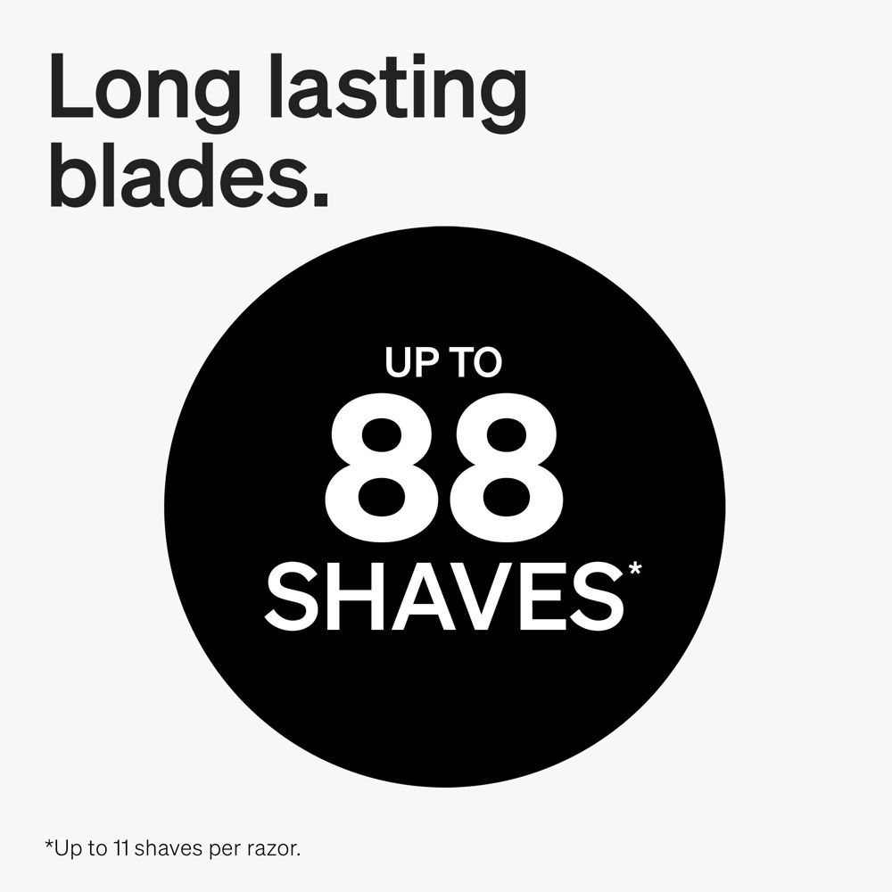 LONG-LASTING BLADES – Each razor lasts up to 11 shaves, for up to 88 shaves per pack of razors.