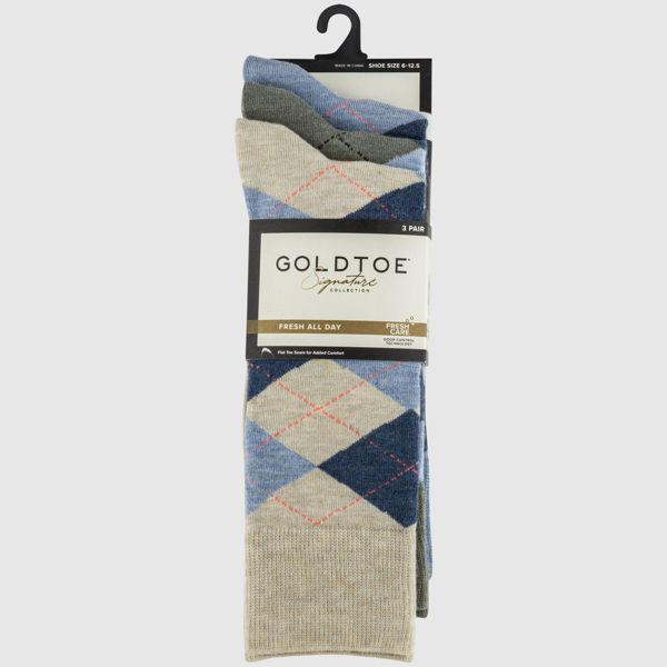 We never sacrifice durability, and our socks are always comfortable. This perfect balance between every feature is what makes GOLDTOE® unique — and pushes us beyond every expectation. At GOLDTOE®, timeless design is at the core of who we are. From foundational favorites to socks that pop, there’s a GOLDTOE® for every fit and style. This trio of crew socks features classic argyle patterns and soft yarns. Fresh Care Odor Control™ helps to keep mositure at bay to reduce unwanted odors, while a touch of spandex provides a Perfect Fit® and flat toe seams ensure your feet are happy all day. Pair with your favorite work attire or elevate your casual capsule with socks you can count on.
