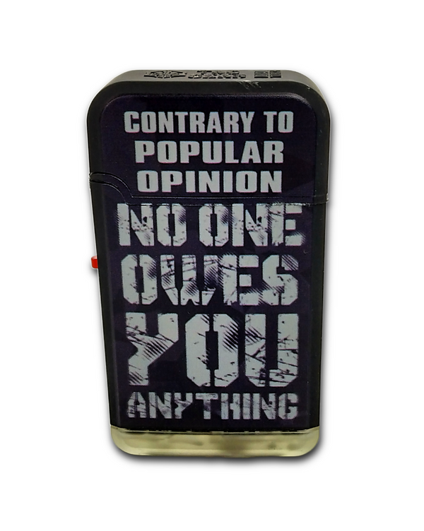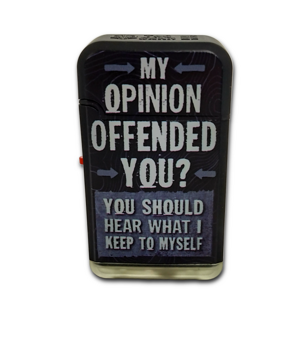 The Tac Gear Torch Lighter is the perfect companion for outdoor adventures. A 2300° dual blue flame provides a consistent, long-lasting burn, and an extra-large, refillable fluid chamber gives you peace of mind that your flame won't go out. Soft-touch casing completes the package, with multiple unapologetic phrase styles to choose from. This lighter is 3.3"H x 1.9"W x 1.1"L.