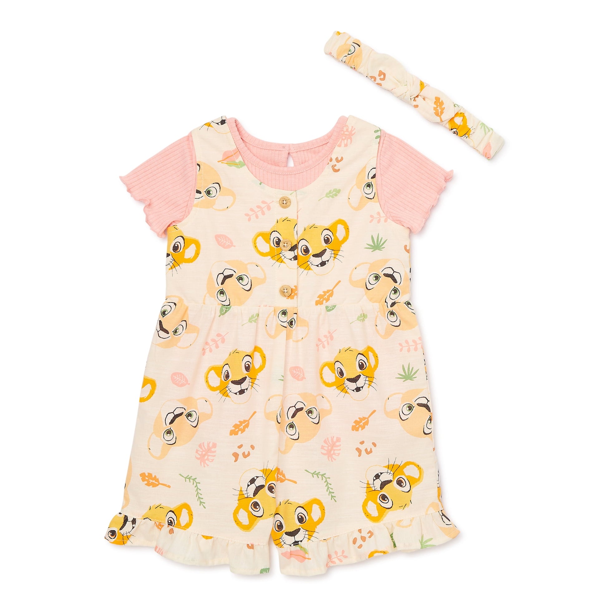 The Lion King Baby Girl Shortall and Tee Outfit Set with Headband, Sizes 0/3 Months-24 Months