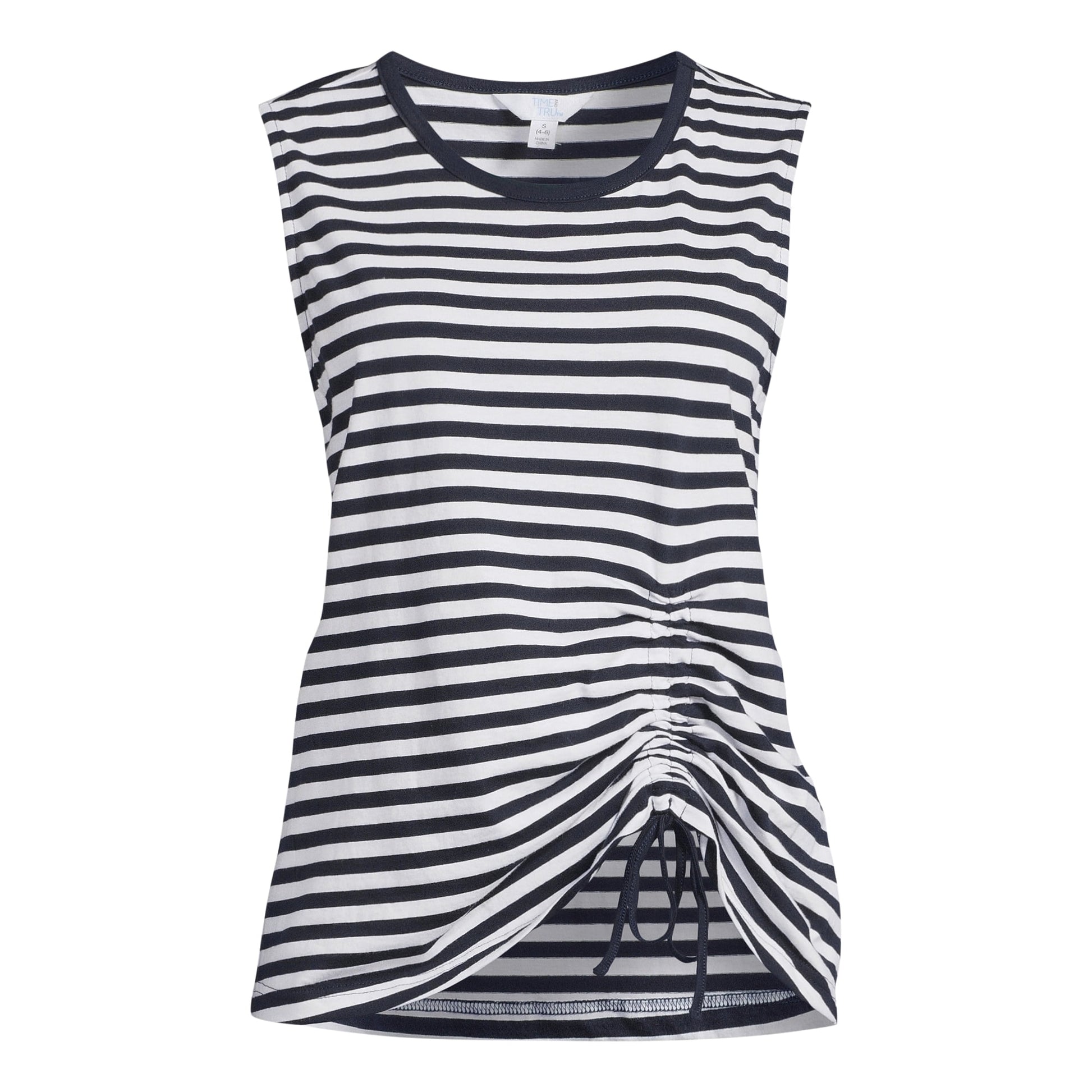 The Time and Tru Sleeveless Front Cinched Top will be your go to for the warm weather. This stylish top features a front cinch detail, adding a touch of flair to your wardrobe. Ideal for warm weather, it pairs nicely with pants, shorts or skirts, making it suitable for various occasions. Whether you’re headed to work, a casual outing, or running errands, this cinched top offers comfort and style in one package. Elevate your fashion game with this trendy and adaptable wardrobe essential.